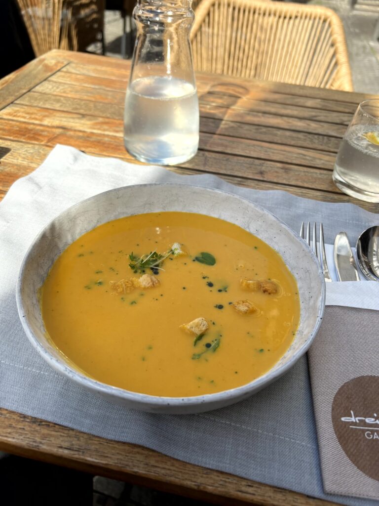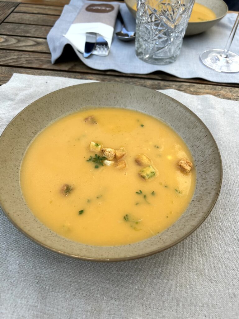 Kalbsbutterschnitzel (Süßkartoffelcreme | grüner Spargel)
