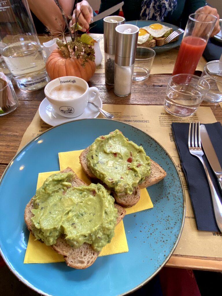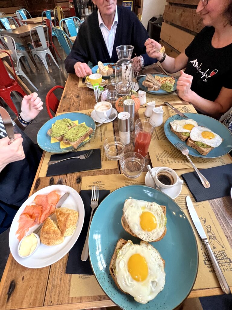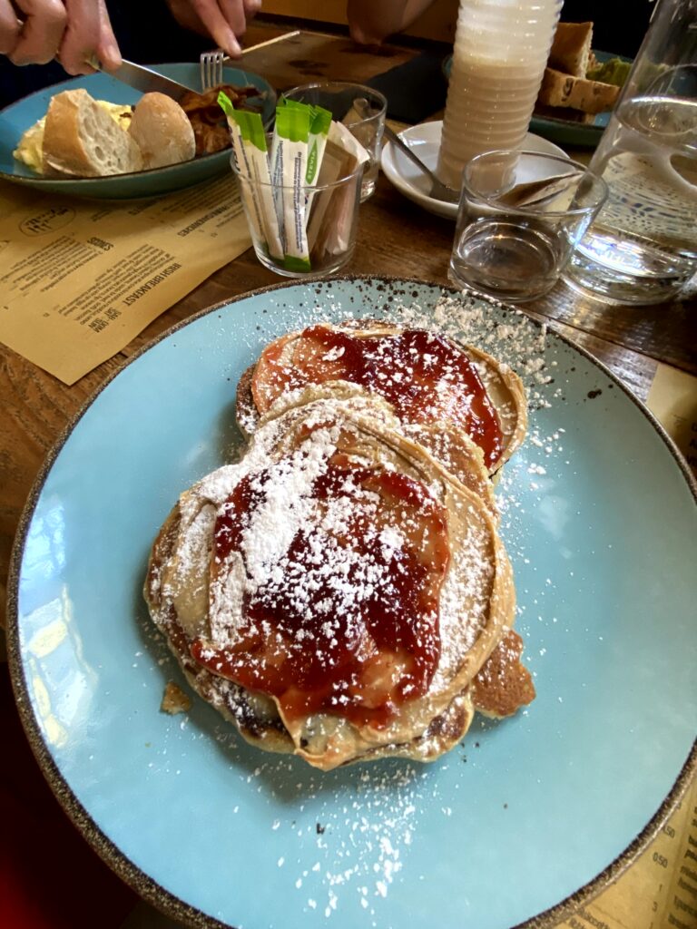 Weniger italienisch war das Frühstück im Mimi‘ e Cocotte. Die Betreiberin scheint irische Wurzel zu haben, was auch im Angebot rüberkommt. Wir aßen Avocado Toast, Pancakes und Scones mit Räucherlachs. Die Scones waren sehr gut, kann ich auf jeden Fall empfehlen.