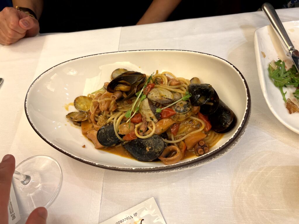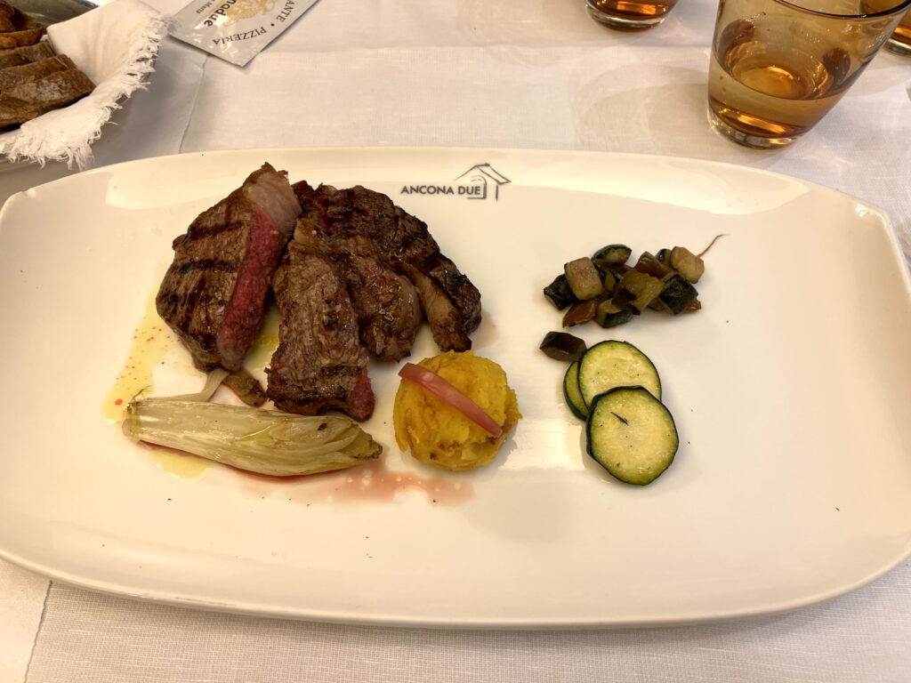 Bei der Heimfahrt ging es kurz an Udine vorbei. In dem unscheinbaren Restaurant Ancona Due gibt es alles was die italienische Küche zu bieten hat. Etwas ausgehungert vom Wegfall des Mittagessen bestellten wir soviel dass sogar der Kellner meint es zu viel (und das soll mal vorkommen). Übrig blieb natürlich nichts und am Ende musste sogar noch ein Dessert her.