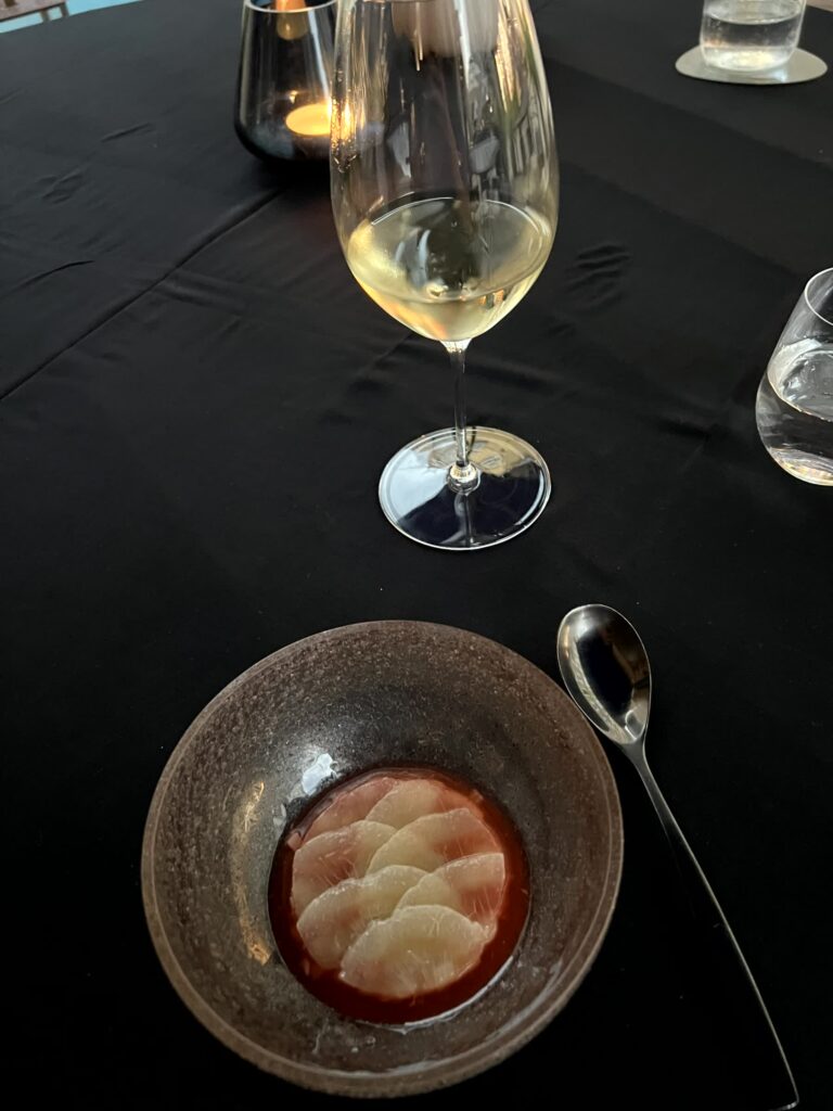 - Hamachi Sashimi im Vanillesud und Dashi