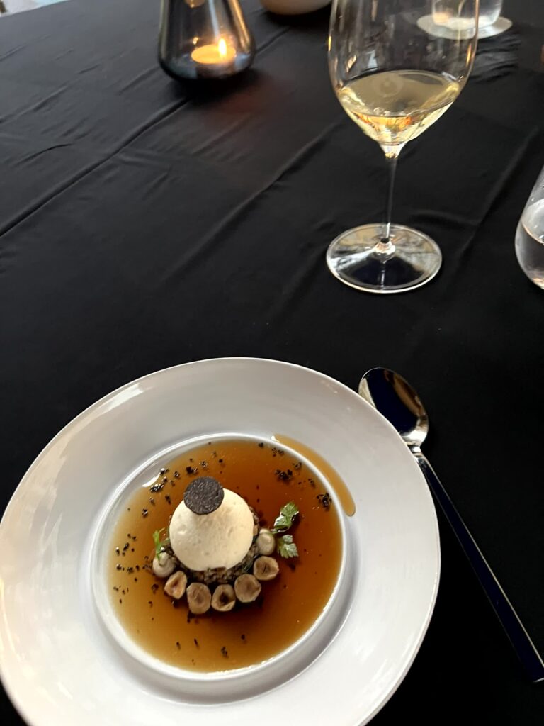 - Australischer Trüffel mit Duxelle, Piemonter Haselnüsse und einer Trauben Consomee