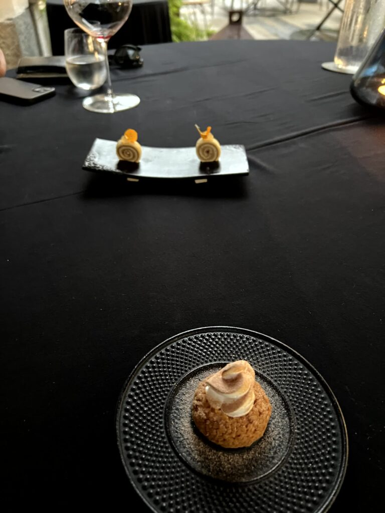 Meine Favoriten waren die Languste und das Hamachi Sashimi, sowohl vom Geschmack als auch von der Konsistenz, den Aromen, und der Präsentation. Mehr erwartet hab ich mir vom Dessertteil, es war gut aber nicht so wie ich es von der Patissiere des Jahres erhofft hätte! Die Petit Four waren vergleichsweise „mager“, auch wenn das Pâte à Choux mit Passionsfruchtfülle sehr gut war. Für den Preis muss man doch sehr überlegen ob sich der Besuch auszahlt.