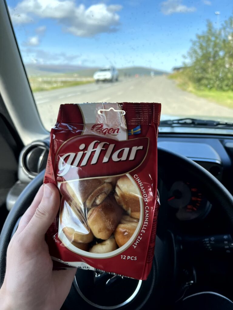Zu Mittag waren wir immer auf der Reise und unterwegs gabs selten was auf dem Weg. Diesmal lächelte uns jedoch ein Restaurant an dass ich als Truckerrestarurant bezeichnen würde. Gefühlt waren wir die einzigen nicht-heimischen. Im Dalakofinn in Laugar gabs zur Abwechslung mal einen Burger, den Smokey Valley mit Dorritos? Eine solide Mittagspause! Als Snack nahm ich dann noch die kleinen Zimtschnecken vom angrenzenden Shop mit. Kann ich ebenfalls sehr empfehlen.