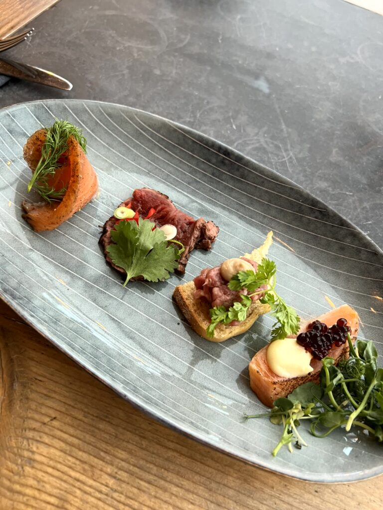 - Vorspeisenselektion: Graved Lachs, Rindcarpaccio, Thunfisch(?), Lachs im ganzen geflämmt