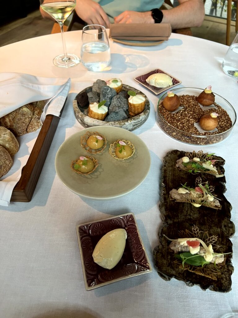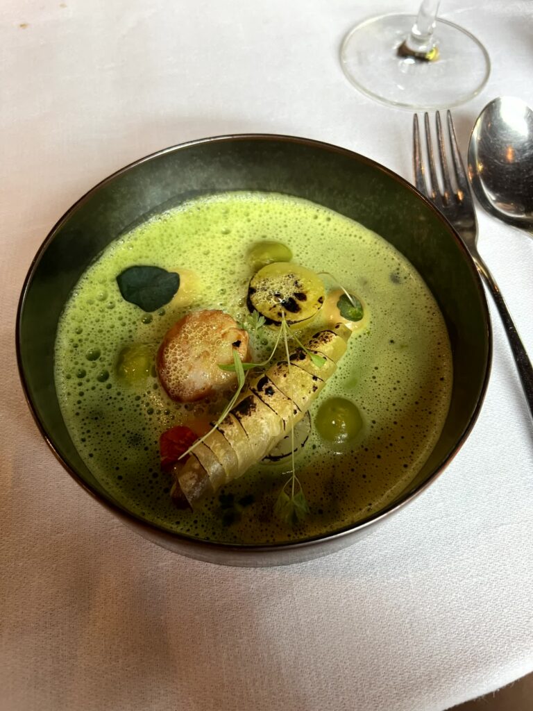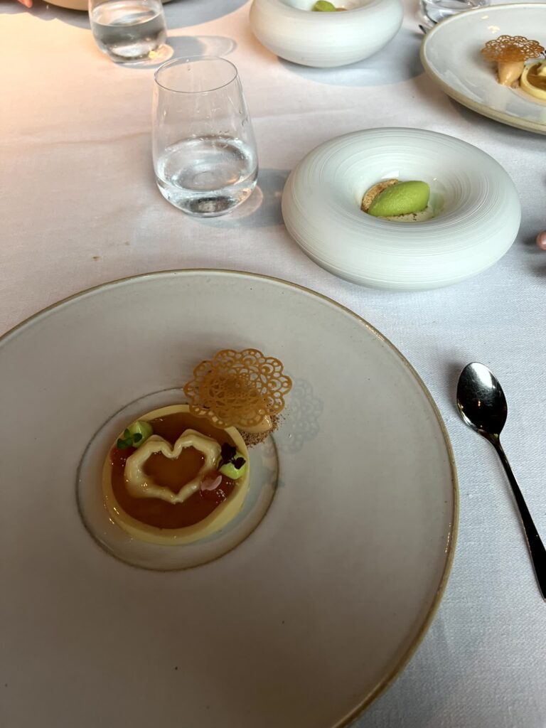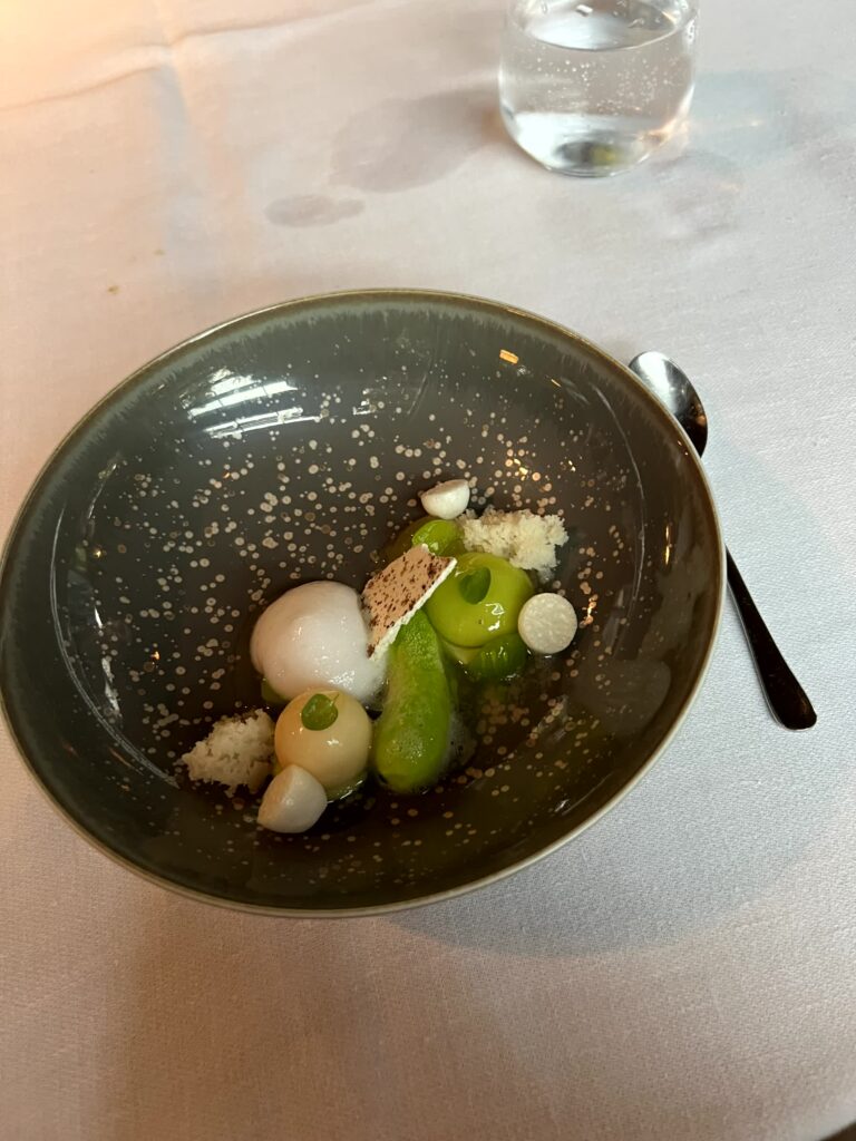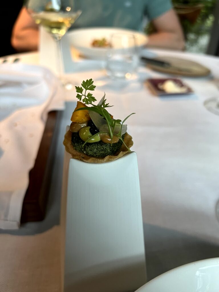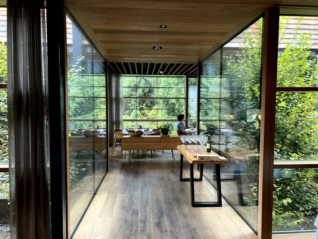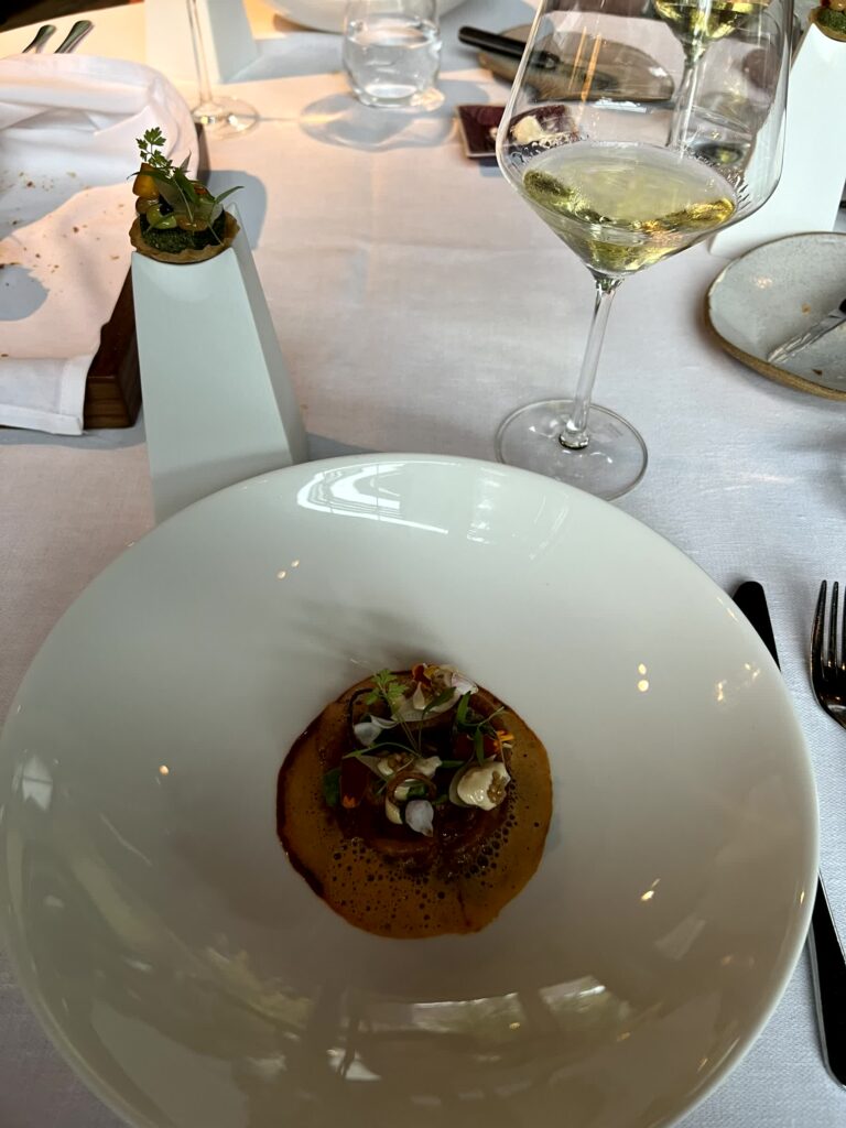 …stand schon lange auf meiner Liste. An einem regnischen Wochenende war es dann endlich soweit. Architektonisch genau mein Stil. Nachfolgend eine Gedächnisrekonstruktion der Gänge, wir hatten 7 Gänge mit Fisch & Fleisch bestellt. Dazu gab es einen Sgaminegg 2020 von Weingut Maria und Sepp Muster.