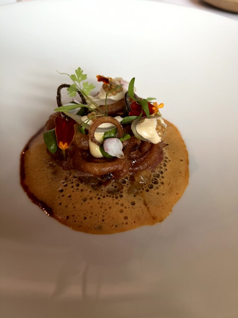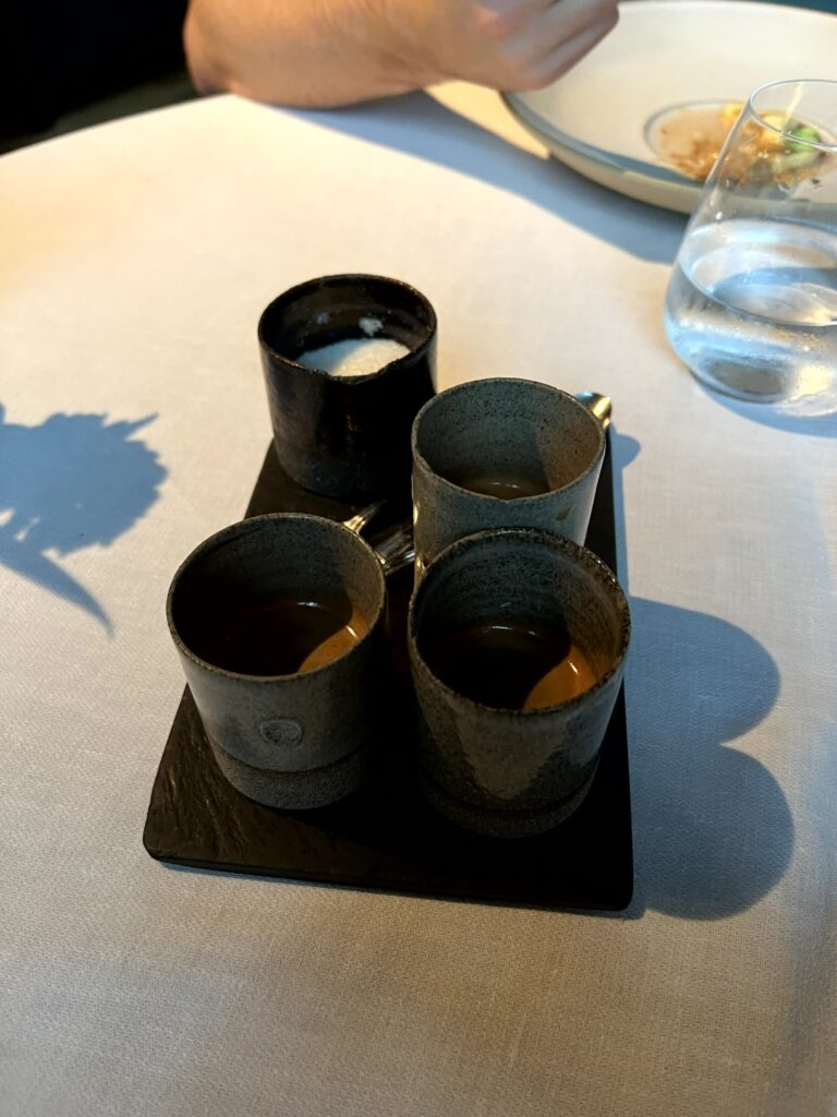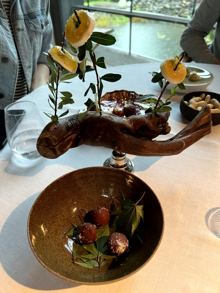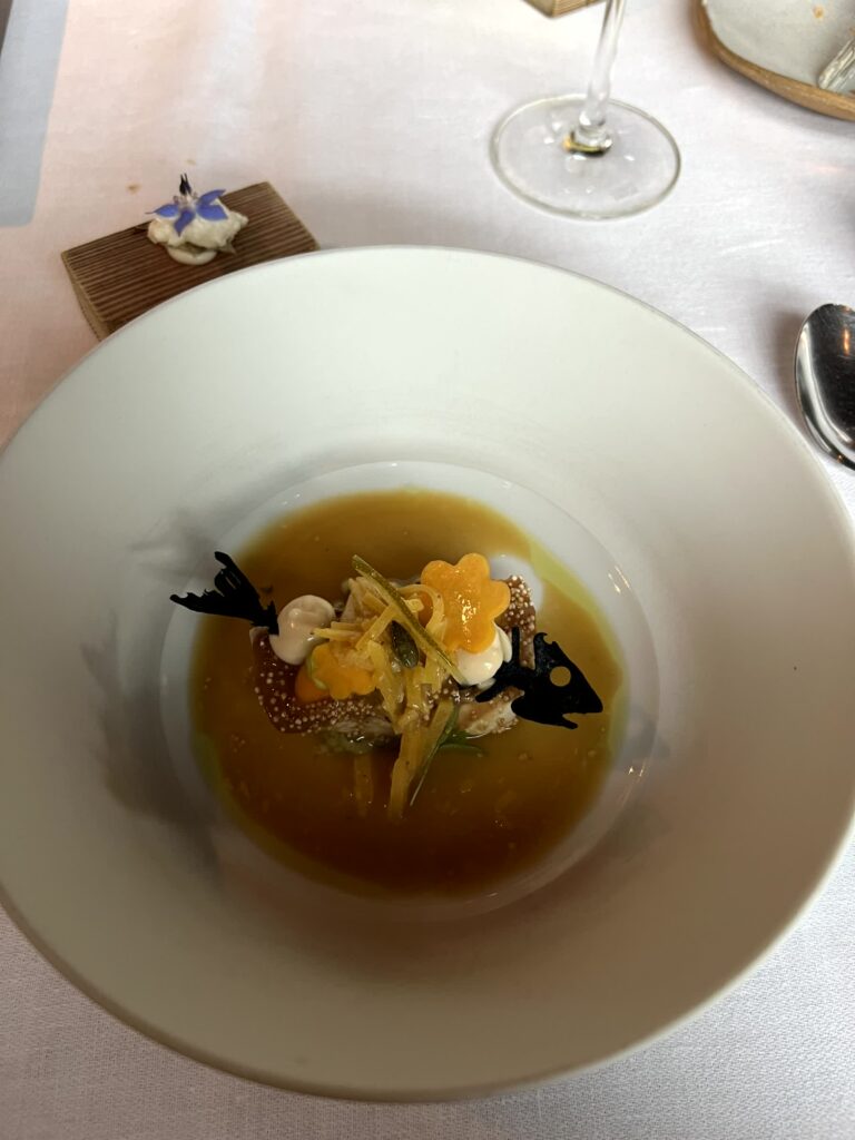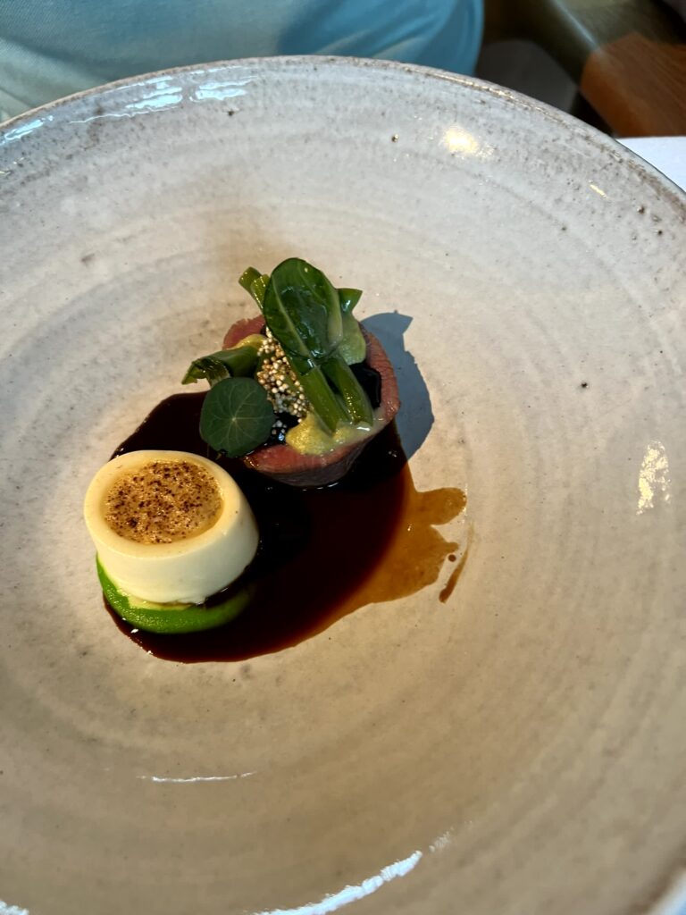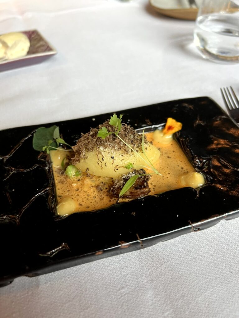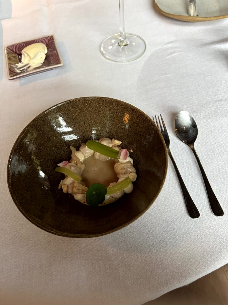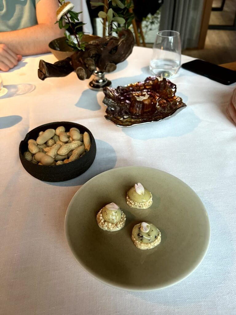 …stand schon lange auf meiner Liste. An einem regnischen Wochenende war es dann endlich soweit. Architektonisch genau mein Stil. Nachfolgend eine Gedächnisrekonstruktion der Gänge, wir hatten 7 Gänge mit Fisch & Fleisch bestellt. Dazu gab es einen Sgaminegg 2020 von Weingut Maria und Sepp Muster.