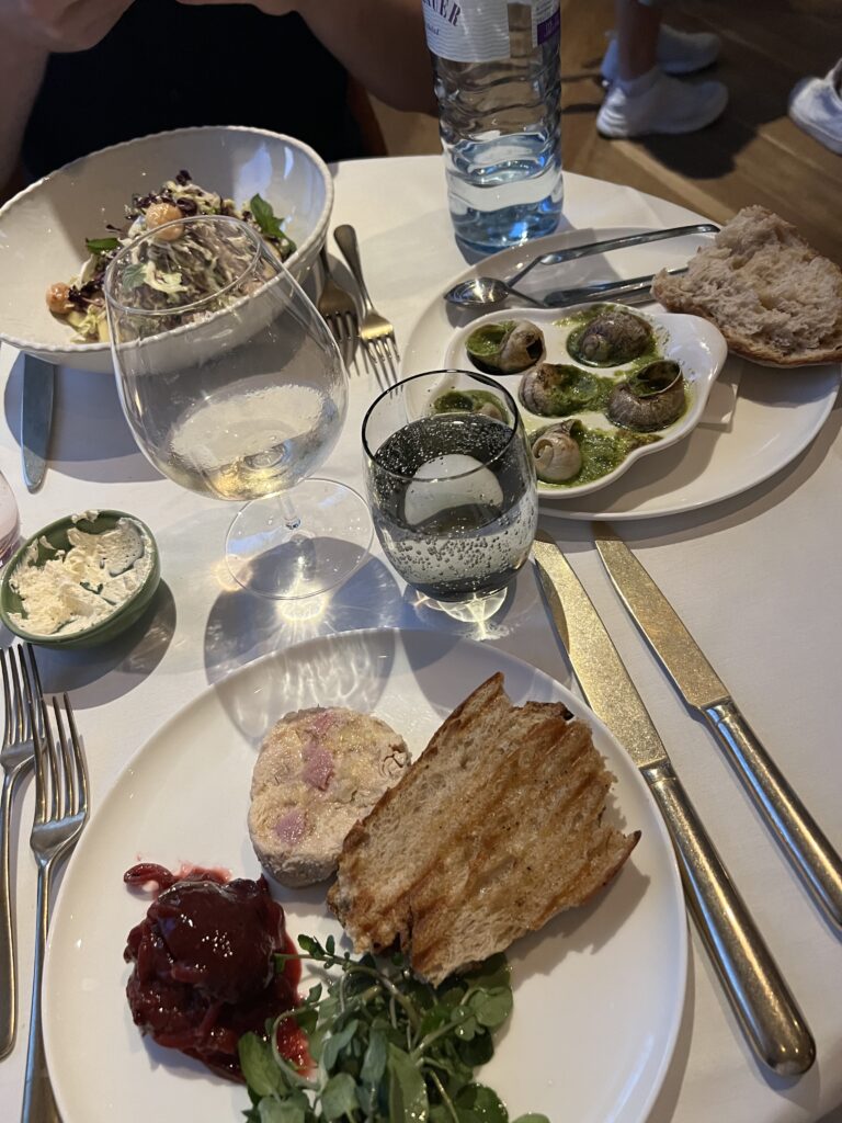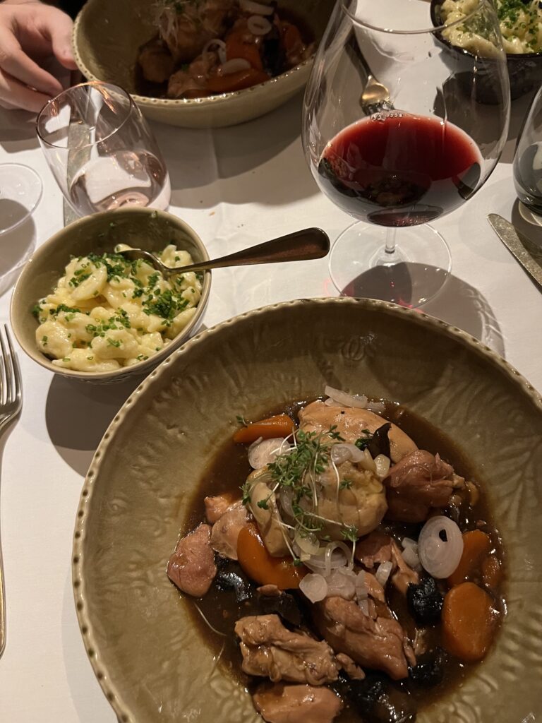- Flair war super, die Schnecken mit Brot sehr gut. Die Entenleber war ok, vom Hauptgang des Coq au Vin Rouge hab ich mir mehr erwartet, auch wenn die Portionsgröße mehr als genug war. Begleitet wurde mit diversen Weiß und Rotweinen. Hier findet man ein paar Schmankerl.