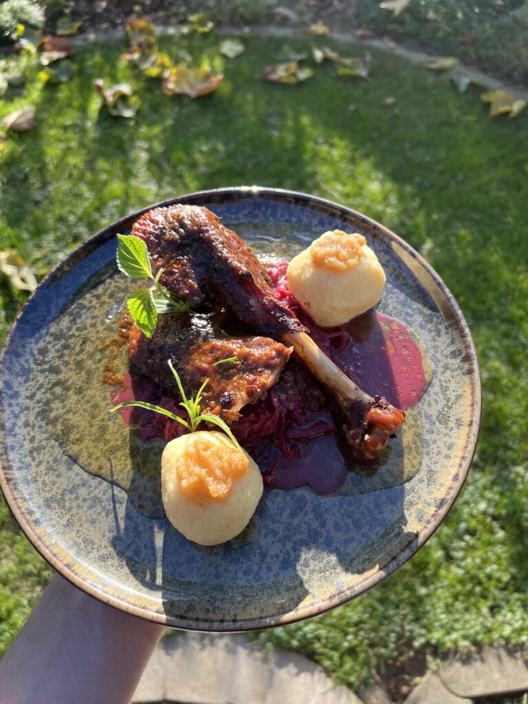 - Gansl mit Quitten-Rotkraut und Erdäpfelknödel
