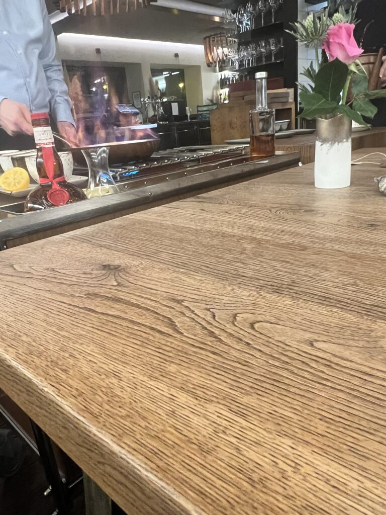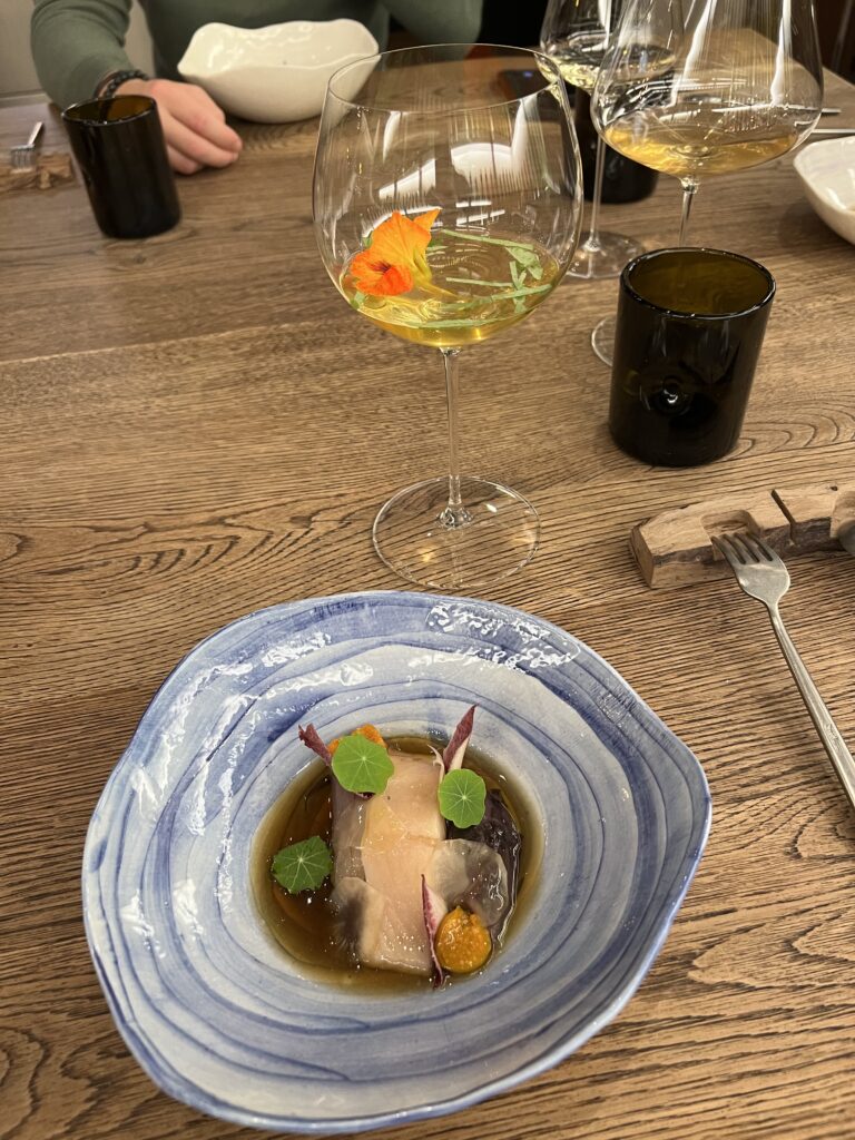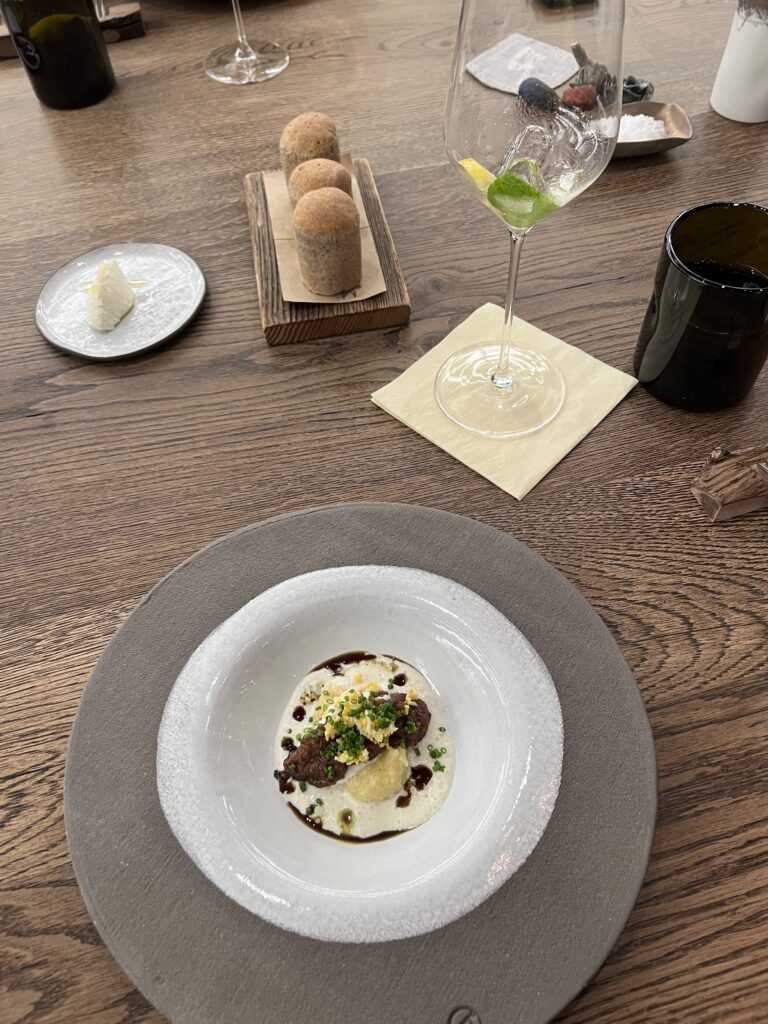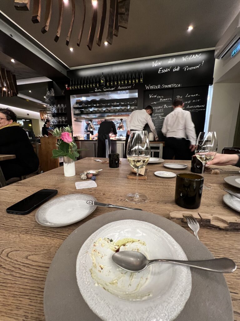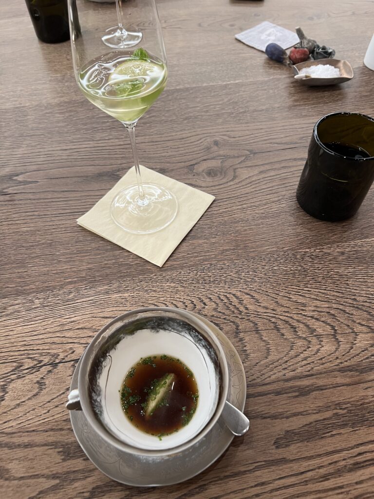 Hier wird man verwöhnt. Gekocht wird hier auf einem anderen Niveau. Gemäß dem Namen muss man eigentlich auch eine Weinbegleitung wählen, als Autofahrer griff ich aber auf die anti-alkoholische Variante zurück. Diese wird nicht extra ausgewiesen, ist aber zu empfehlen. Wir haben uns für die große Speisenfolge entschieden, das sind ganze 12 Gänge! Man muss da definitiv etwas Zeit mitbringen. Aber es lohnt sich. Der Chef’s Table ist ebenfalls empfehlenswert, so kann man die Küche beim Zubereiten zusehen und bewundern.
