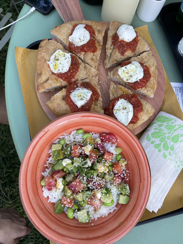 Poke Bowl Summer Green (Riso Rosso Integrale, Hummus di Ceci, Pinoli, Salsa Yogurt, Menta, Paprika Affumicata, Crudite di Verdure)