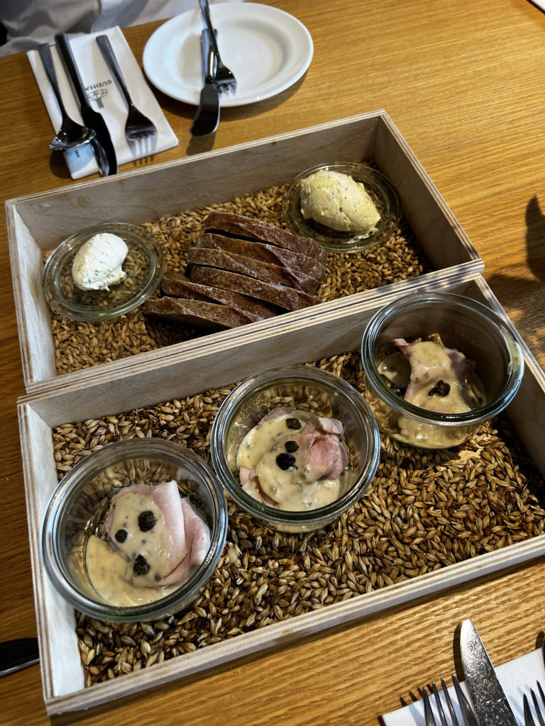 Gedeck: Sauerteigbrot mit Butter und steirischem Vitello tonnato