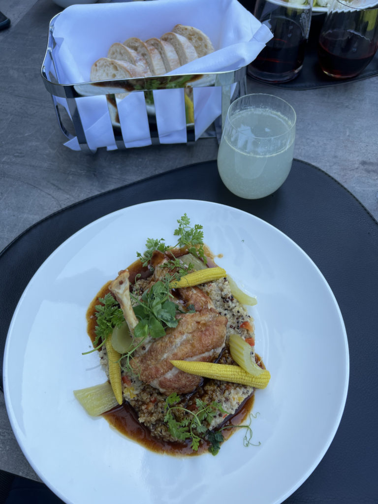 Knusprige Perlhuhnbrust (zweierlei Quinoa / Ofentomaten / Rosmarin)