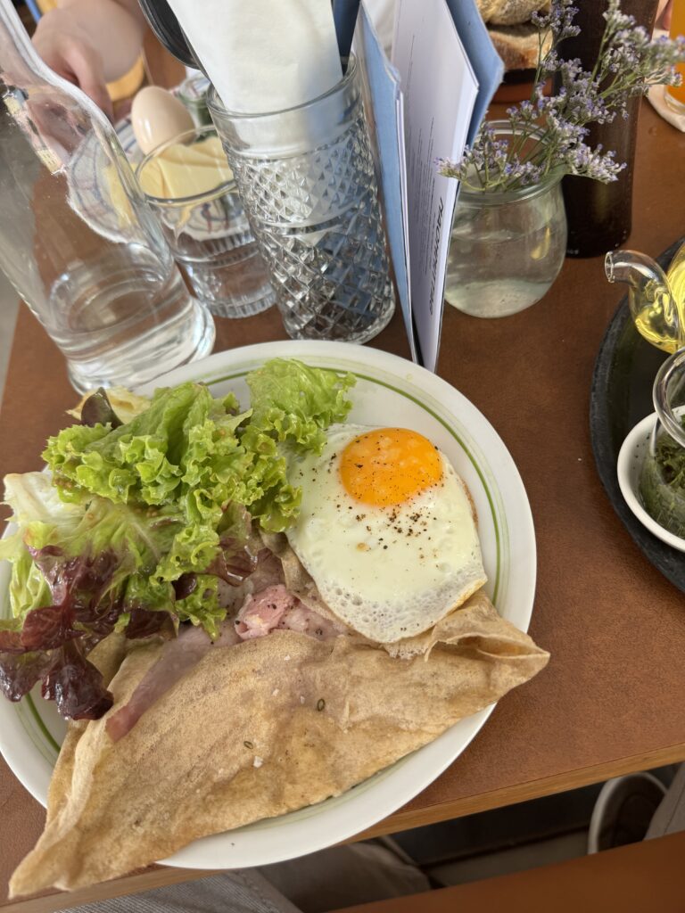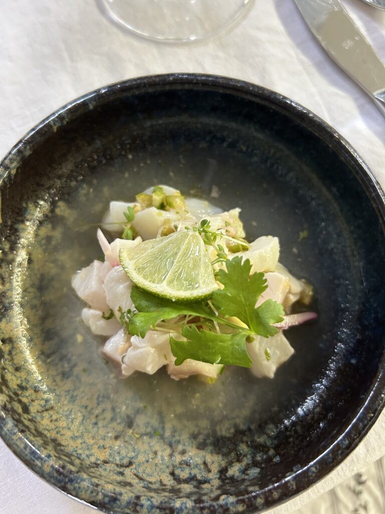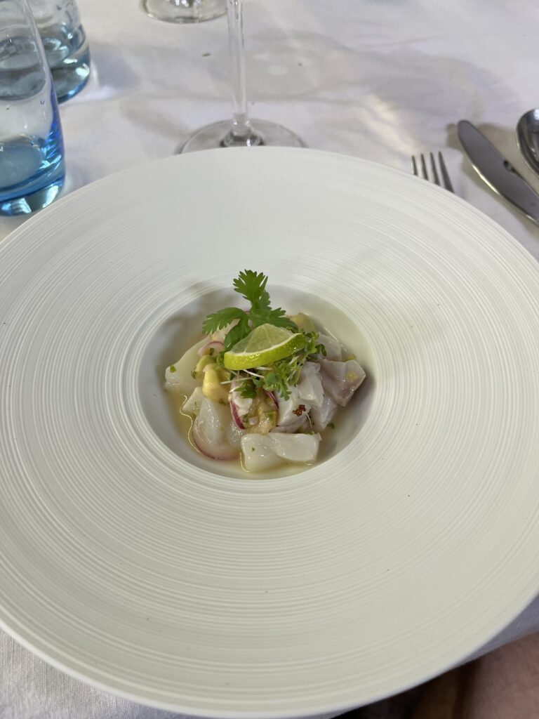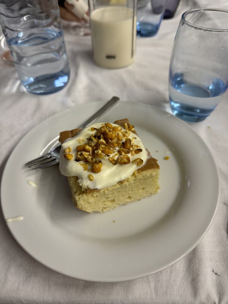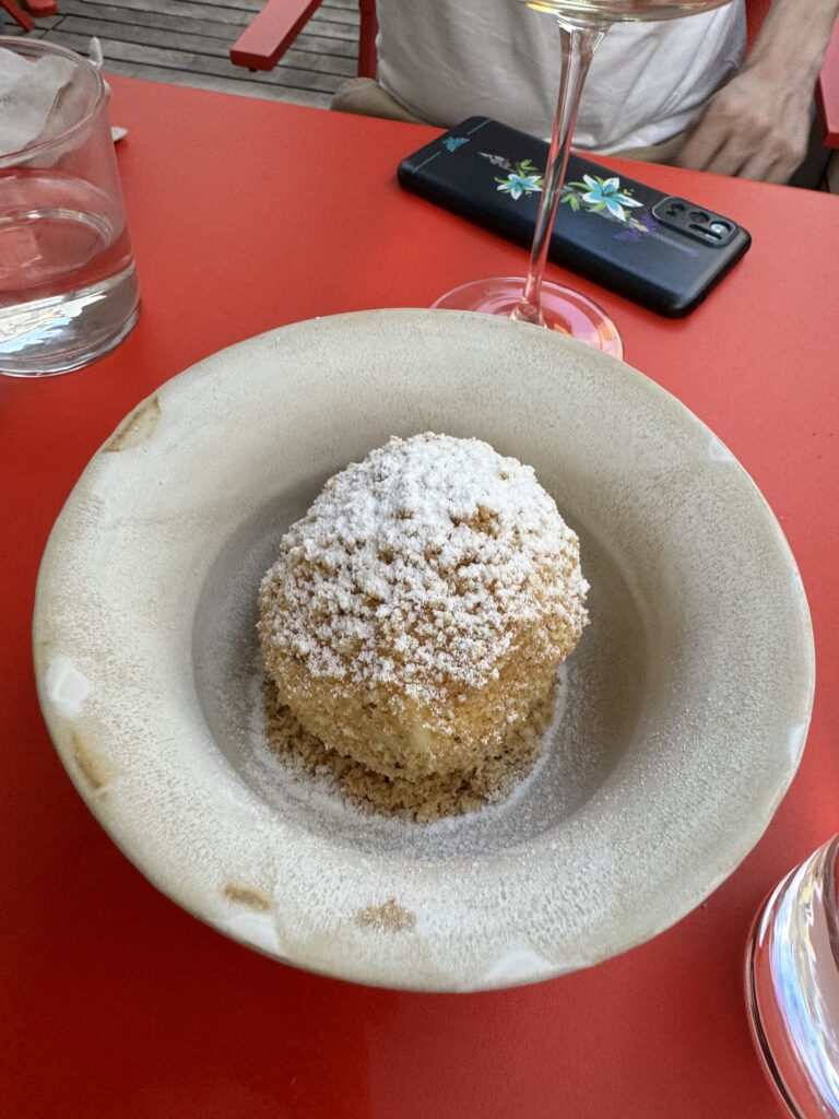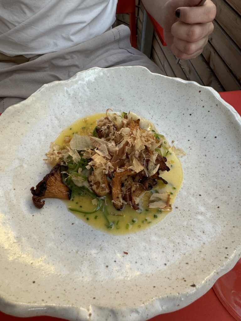 Der Abschluss war mir dann etwas zu experimentell nach einem doch traditionellem Mahl. Blätterteig, Krennmousse, getrocknete Milchhaut und Birne. In der Gesamtkombination schon passend, aber für mich nicht der richtige Abschluss zur Gans.
