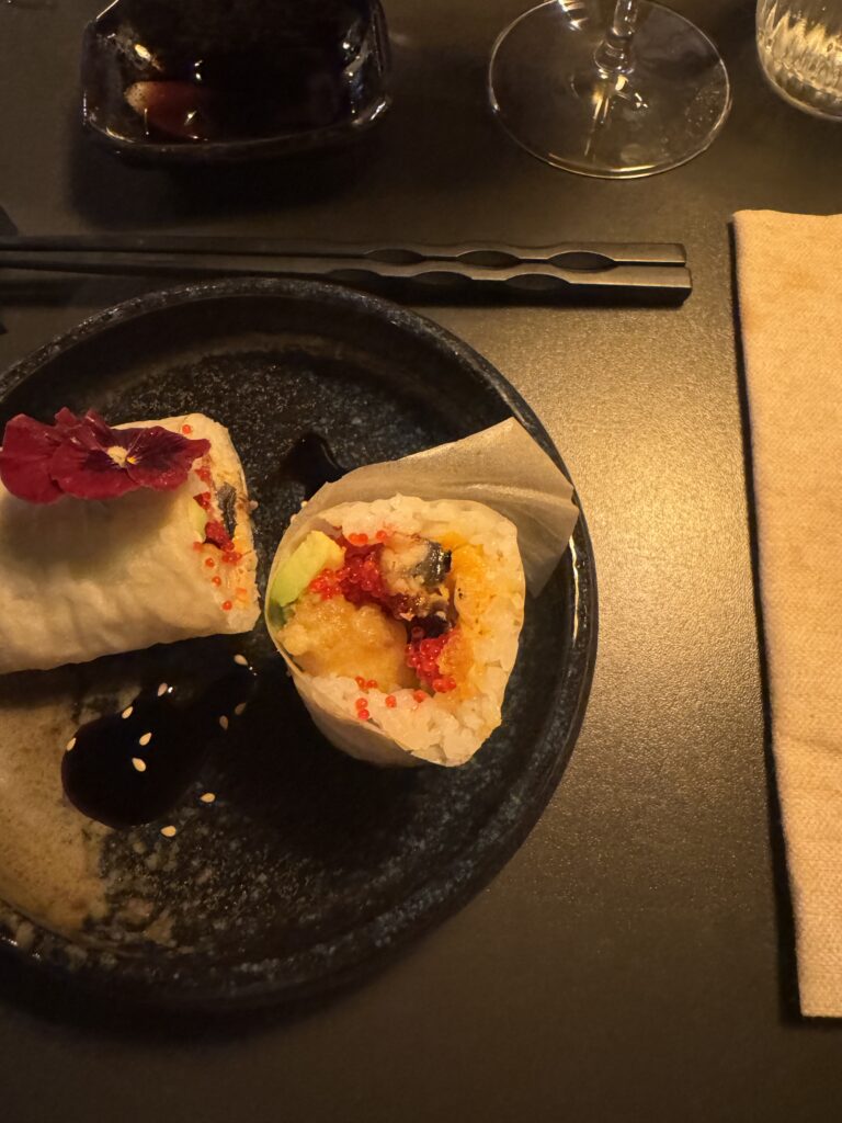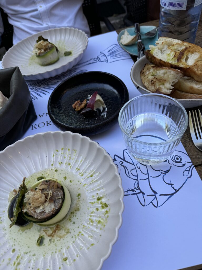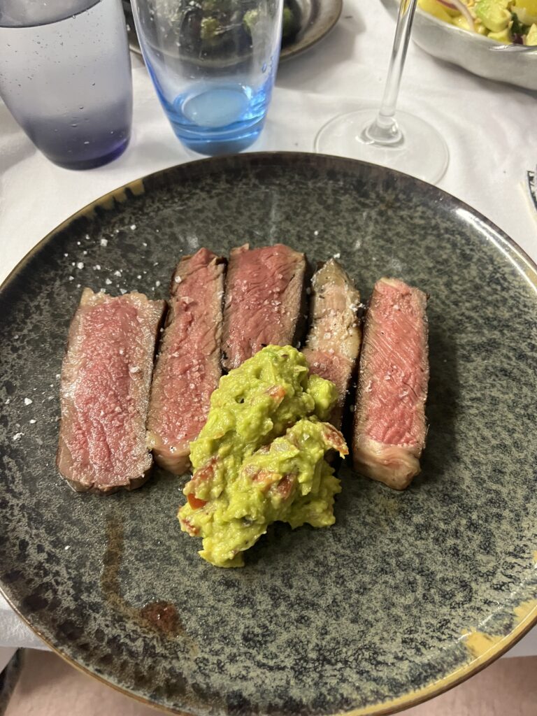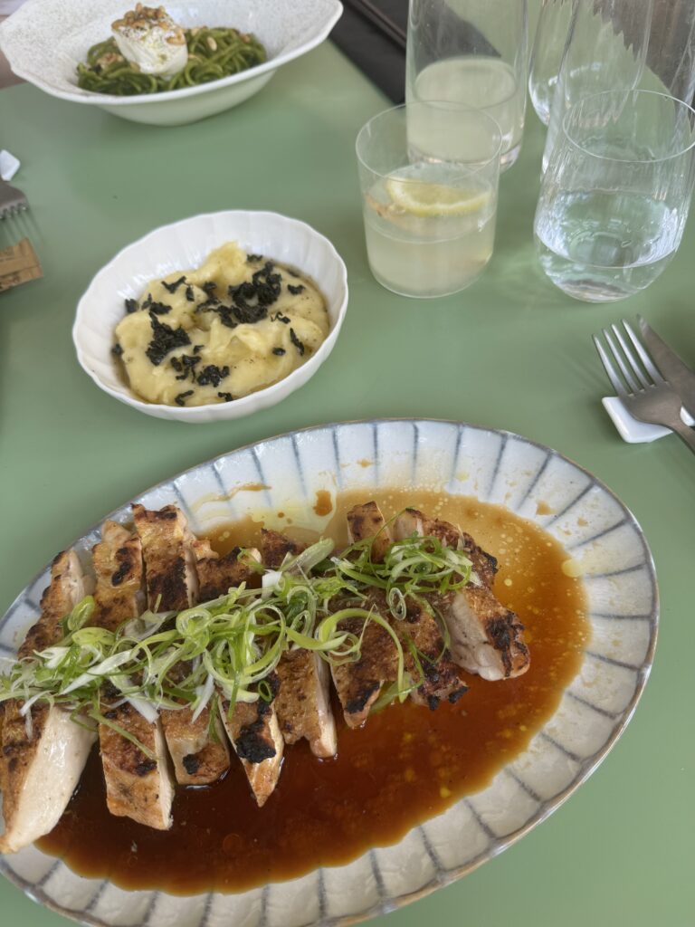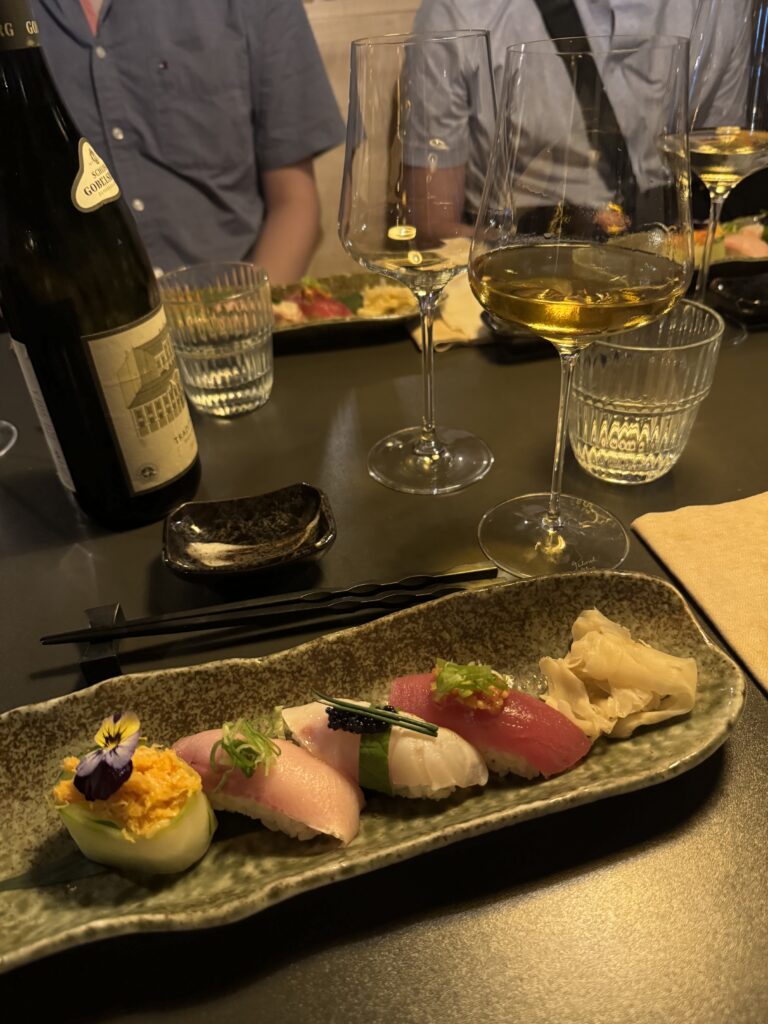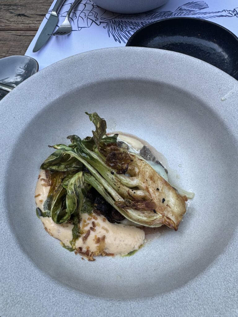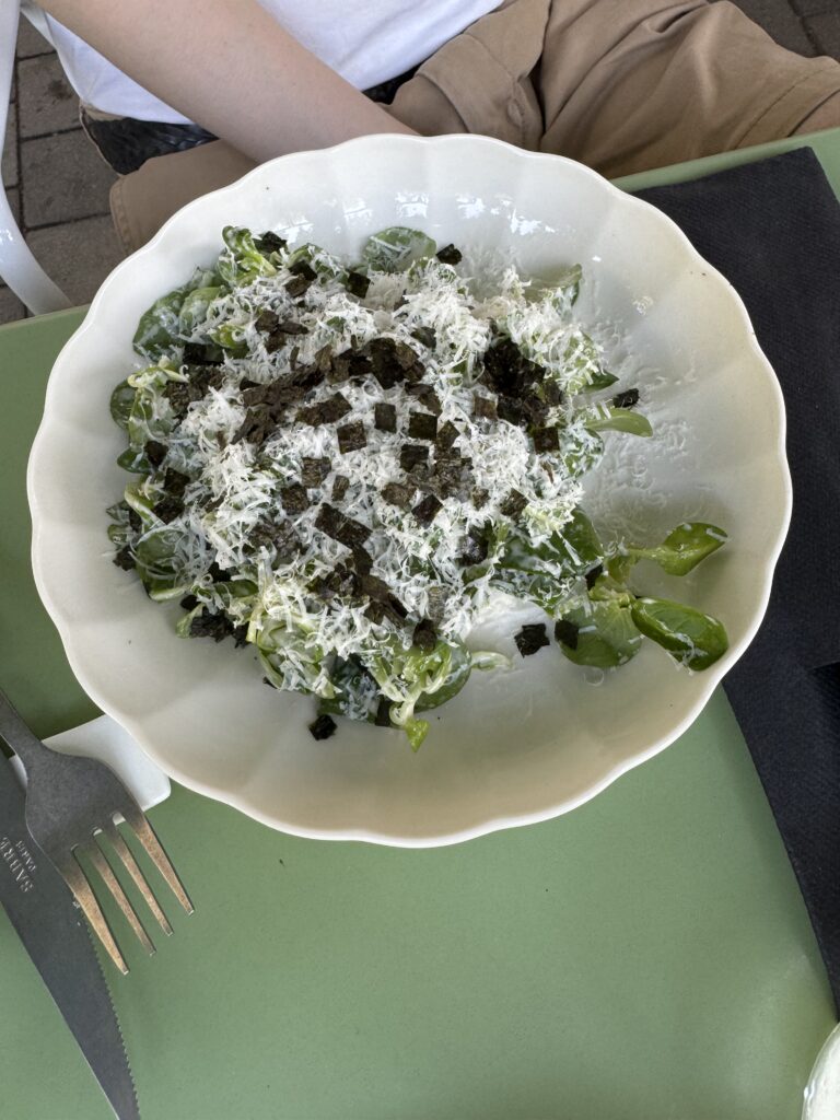 Spätestens seit dem Knödelbuch (woran auch Katharina Seiser gearbeitet hat) lernte ich auch Knödel wertzuschätzen. An diesem Abend gleich mit drei Varianten vertreten war es mir dann aber fast zuviel Kohlenhydrate auf einmal. Meine Lieblingsbeilage war aber das Rotkraut, die leichte Schärfe harmonierte perfekt dazu. Das gesunde Highlight waren die Kohlsprossen – zum sonst eher schweren Gericht. Die Gans war richtig knusprig und das Fleisch sehr mürb. Die Sauce gesellte sich dennoch gerne dazu.
