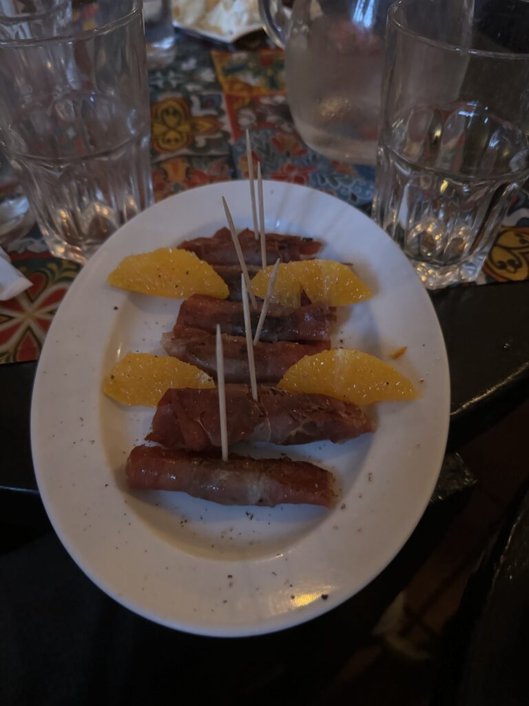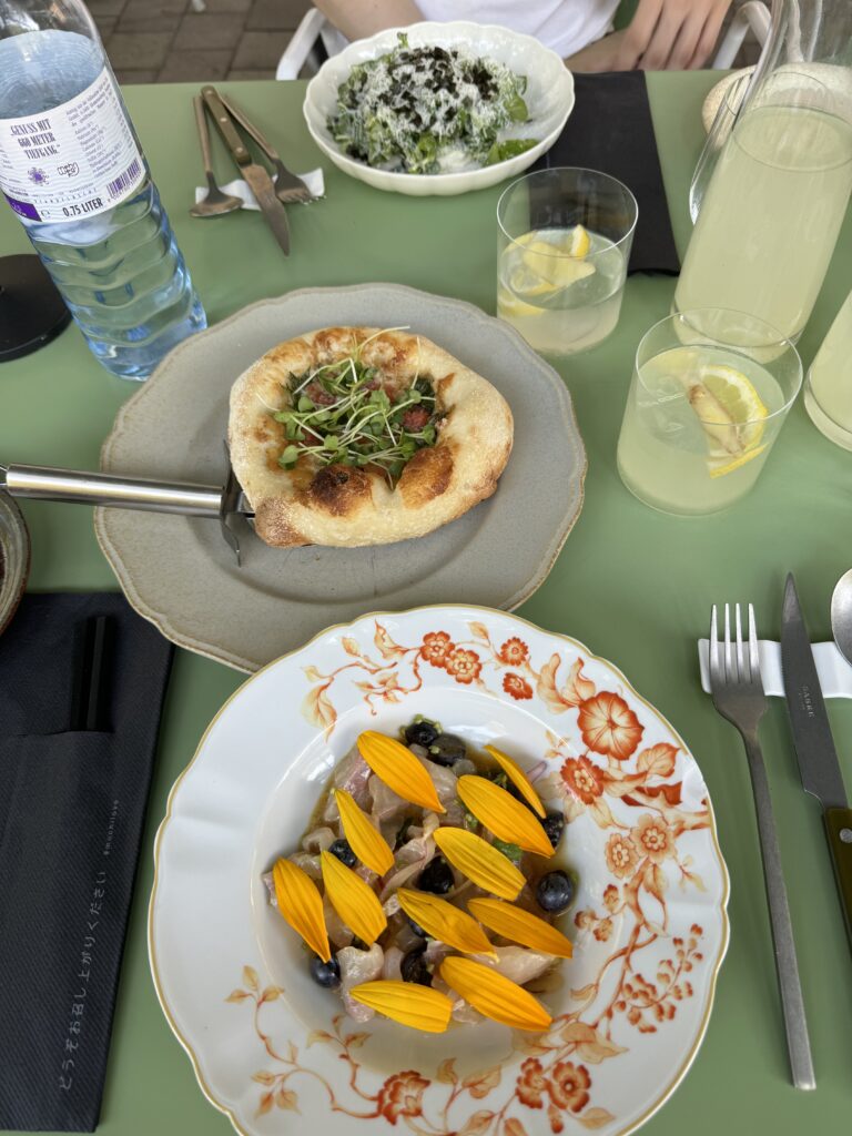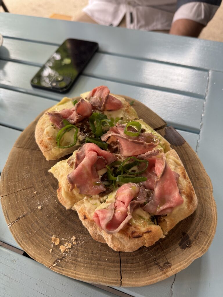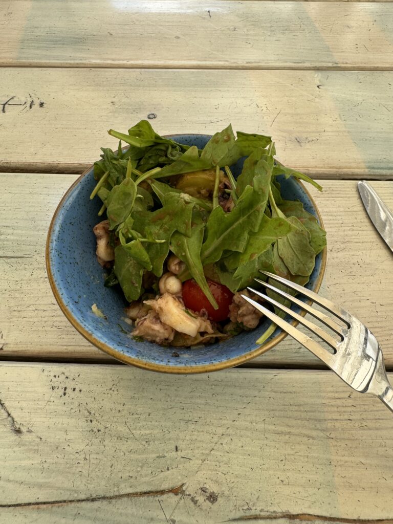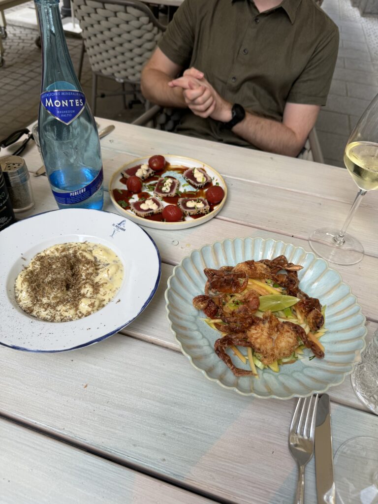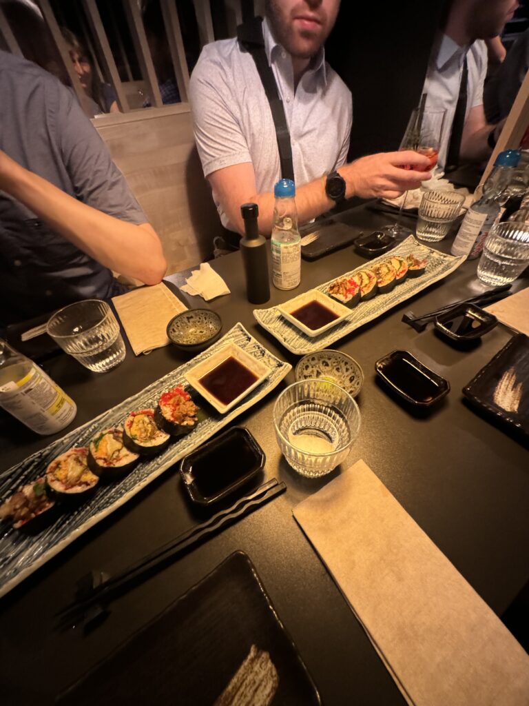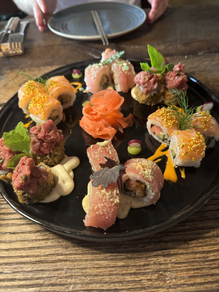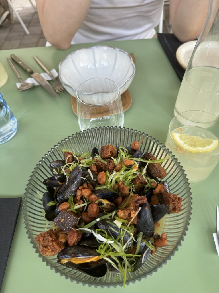 Spätestens seit dem Knödelbuch (woran auch Katharina Seiser gearbeitet hat) lernte ich auch Knödel wertzuschätzen. An diesem Abend gleich mit drei Varianten vertreten war es mir dann aber fast zuviel Kohlenhydrate auf einmal. Meine Lieblingsbeilage war aber das Rotkraut, die leichte Schärfe harmonierte perfekt dazu. Das gesunde Highlight waren die Kohlsprossen – zum sonst eher schweren Gericht. Die Gans war richtig knusprig und das Fleisch sehr mürb. Die Sauce gesellte sich dennoch gerne dazu.