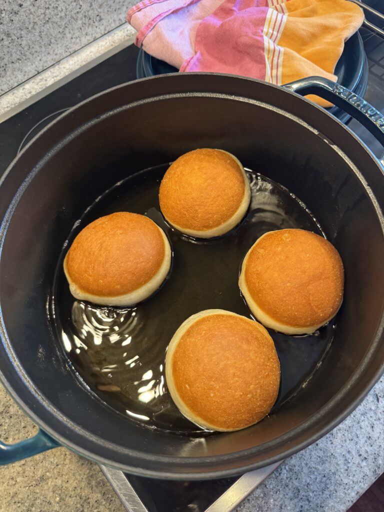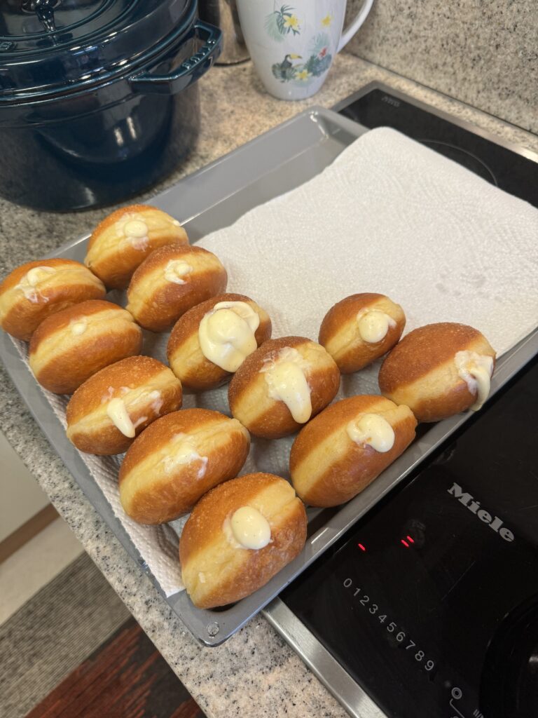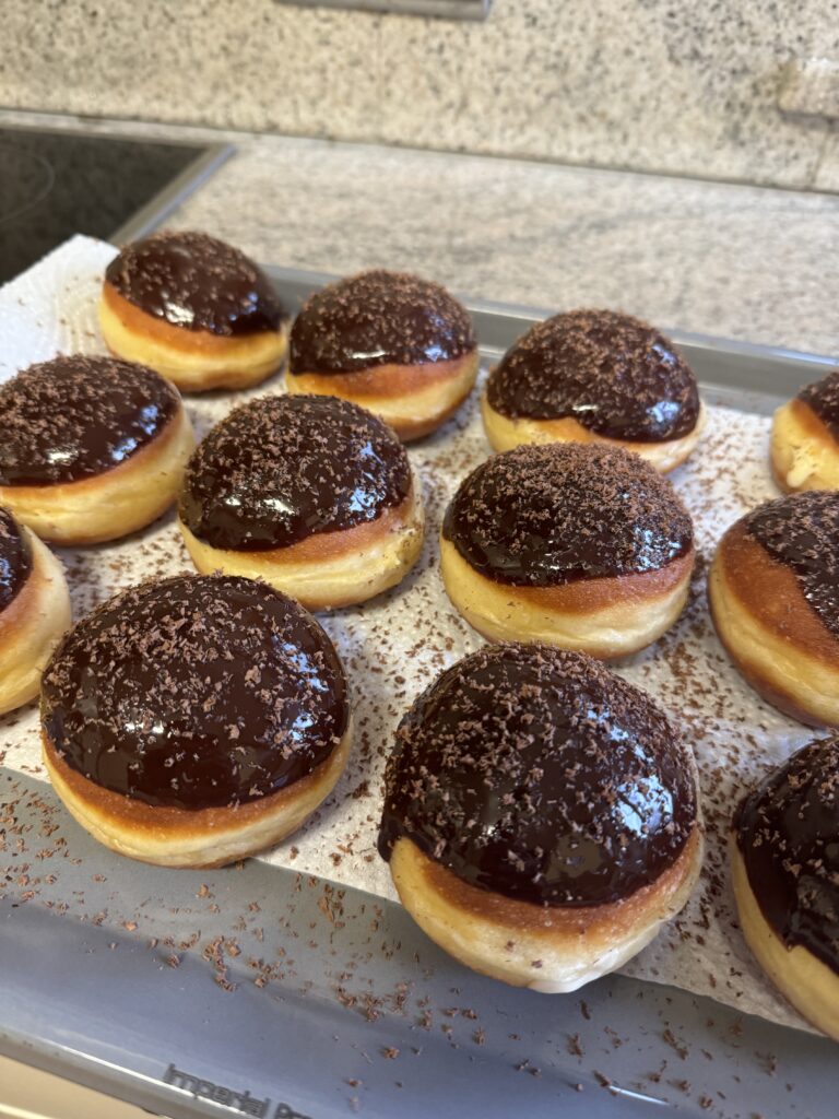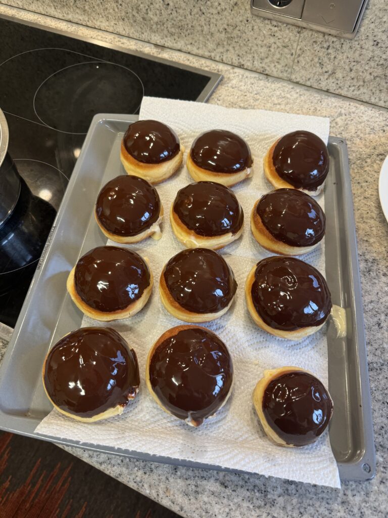 Wer kann frittierten Teig schon widerstehen? Ich jedenfalls nicht. Pünktlich zu Fasching gab es die dazugehörigen Krapfen, fluffig weich und gefüllt mit reichlich Marillenmarmelade. Am Ende noch eine illegale Version, gefüllt mit Vanille und überzogen mit Schokolade. Für das letzte Foto muss ich mich entschuldigen, das wirkt ungewollt(!) pornografisch..