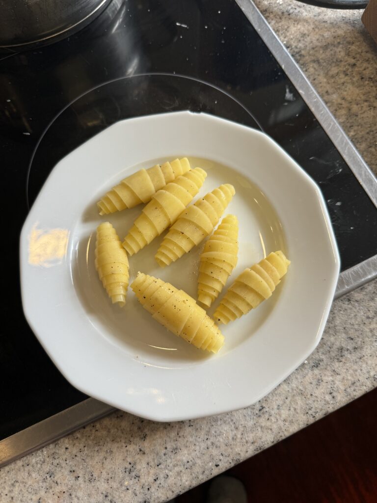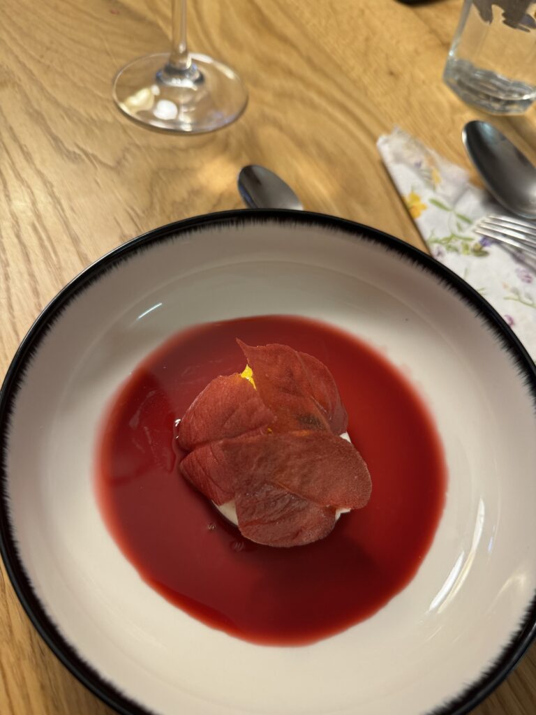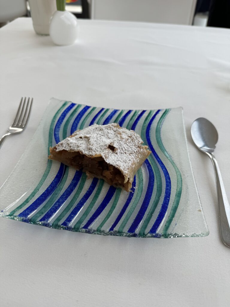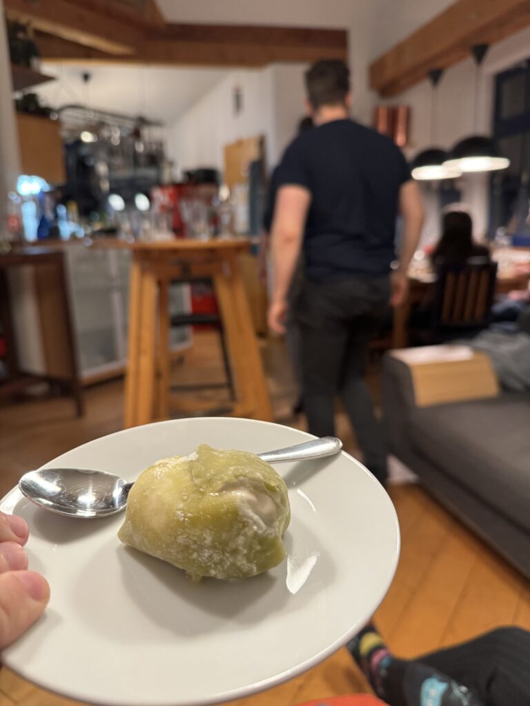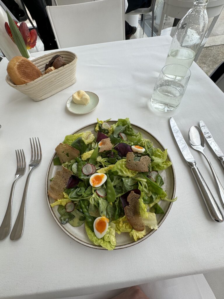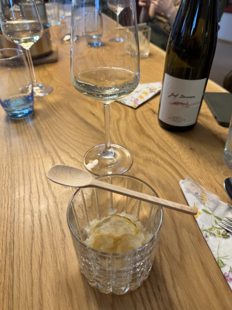 Nächster Tag, neue Erfahrungen. Frühstück entfiehl „Magen-gerecht“, da am Vorabend doch ein bisschen viel Wein floss. Ein Landsorten Brot mit Rohmilchbutter von Joseph Brot und Kirishma Sencha ließen mich gut in den Tag starten. Zu Mittag einen schnellen Besuch in der Meierei für einen wirklich guten Frühlingssalat und super gebratenen Karpfen. Der Apfelstrudel durfte natürlich nicht fehlen.