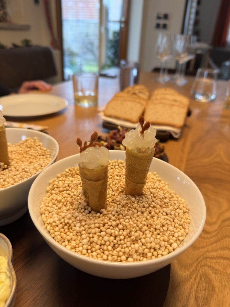 Es war wieder mal soweit, das private Gängekochen ging in die fünfte Runde. Geplant waren insgesamt 6 Gänge, inklusive Amuse-Bouche und Friandise am Ende. Um das alles zu bewerkstelligen musste ich ganze drei Tage Urlaub nehmen – und es waren sehr intensive Tage.