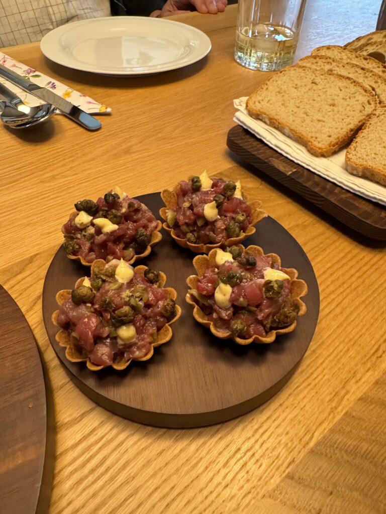 Rehtartar auf Buchweizentartelette mit frittierten Kapern und Trüffelcreme