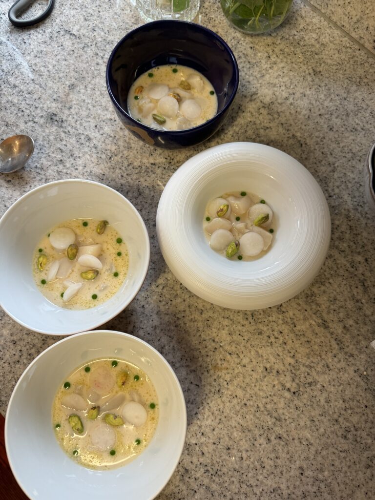 Vichyssoise mit langsam geschmorten Lauch und confierter Kartoffel