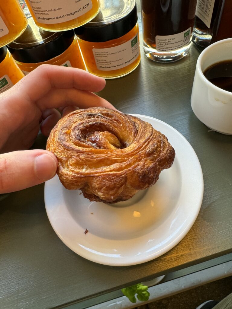Extra nach Wien fahren um Keramik zu kaufen? Ja das hab ich getan. Am Ende war sogar noch etwas Zeit für Kulinarik. Gestartet wurde mit einem French Toast von Joseph Brot, aus Brioche Taoast, Chiasamen von Virunga Origins, Heidelbeeren vom Beerenberg, Einkornmalz und Creme fraiche. Dazu Sencha aus einem einzelnen Teegarten im Makizono-cho Distrikt (Kirishima). Zum Abschied noch schnell ein Mandelcroissant, im Paremi ging es dann ähnlich nussig weiter mit einem Pate-a-choux gefüllt mit Pralinee. Zum späten Mittag gab es im O.M.K (von Mochi) eine vegetarische Sushi Platte mit Trüffel Rolls, Shiso Rolls und Maki. Kurz noch den Spar am Schottentor bewundern (würde da gerne täglich einkaufen!) und den Abend mit Tacos bei MAIZ ausklingen lassen.