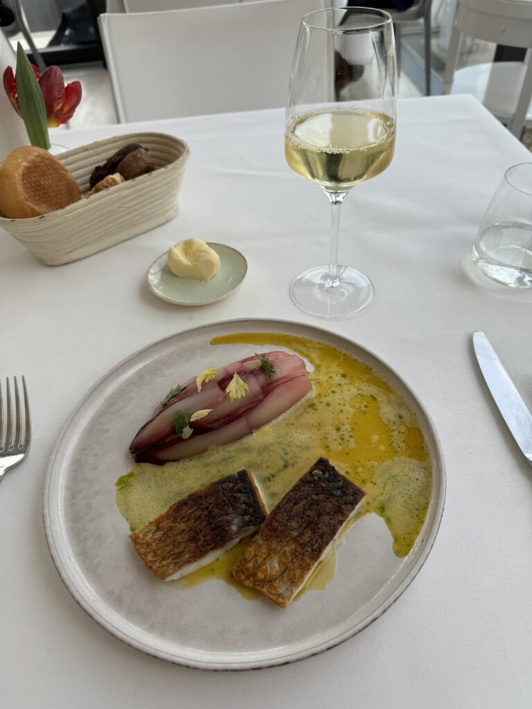 Fischmosaik vom Wolfsbarsch mit Fenchel Beurre Blanc