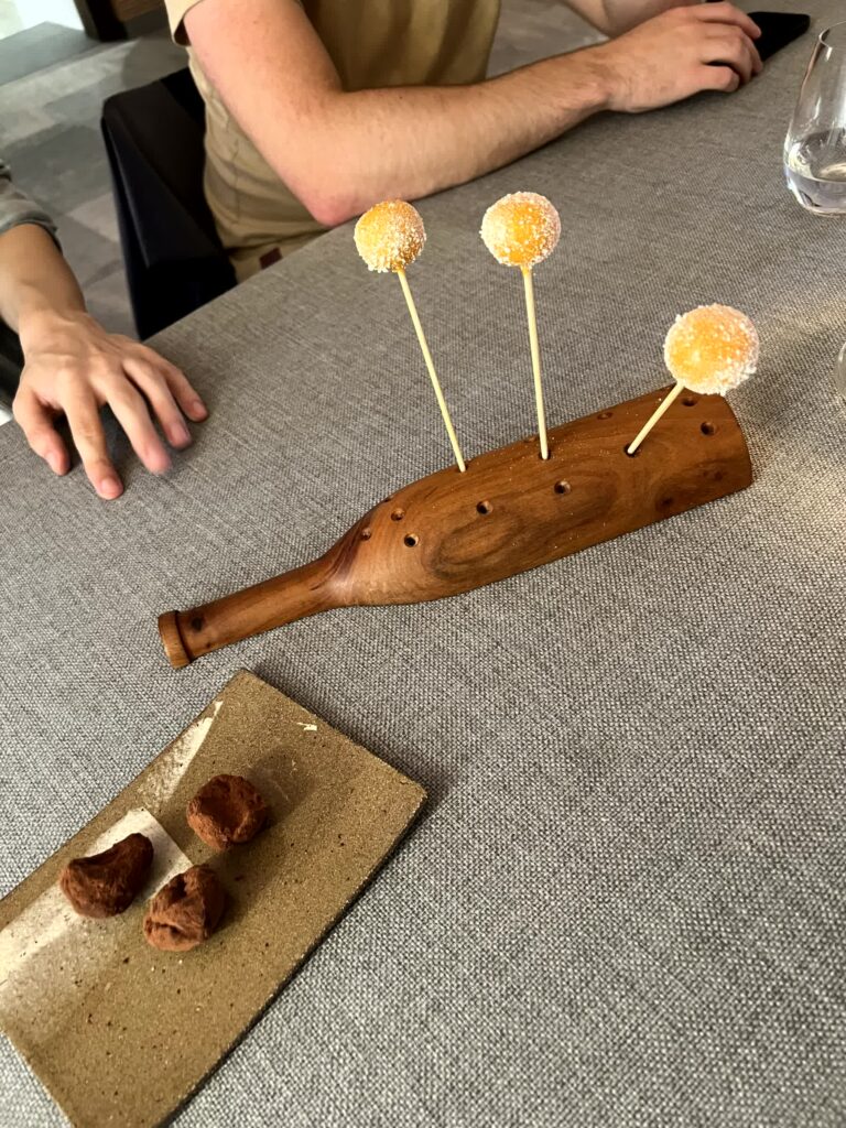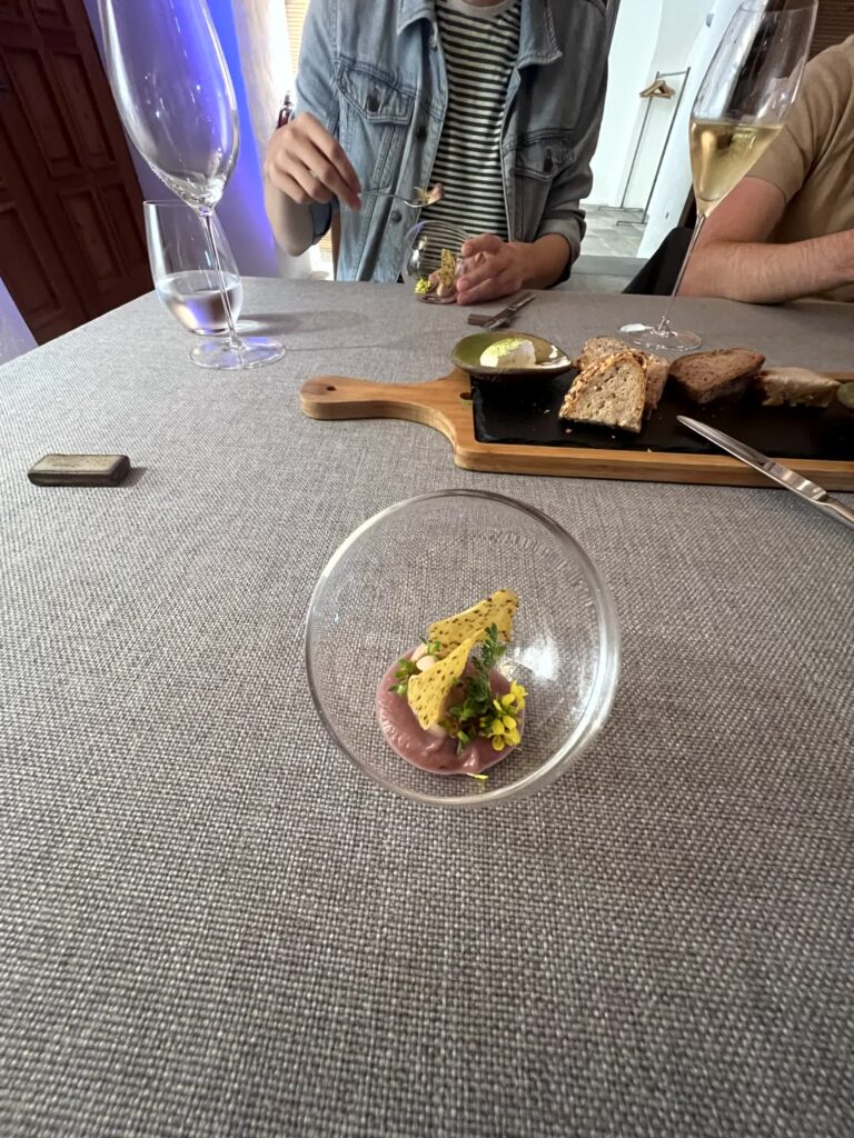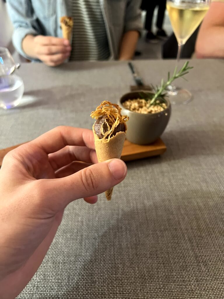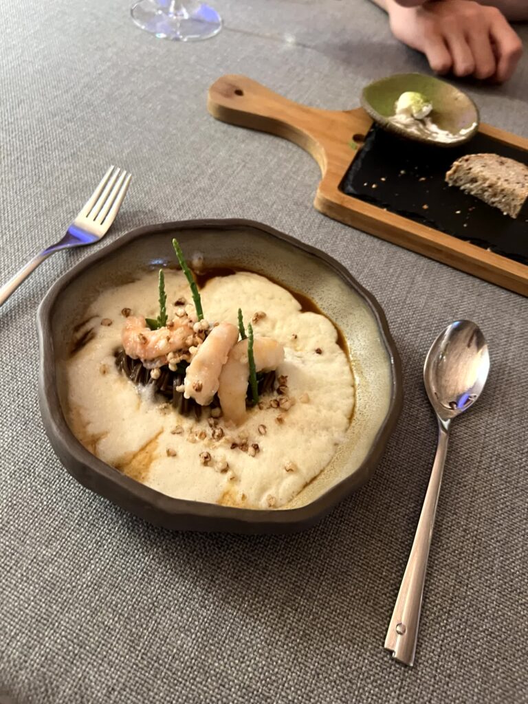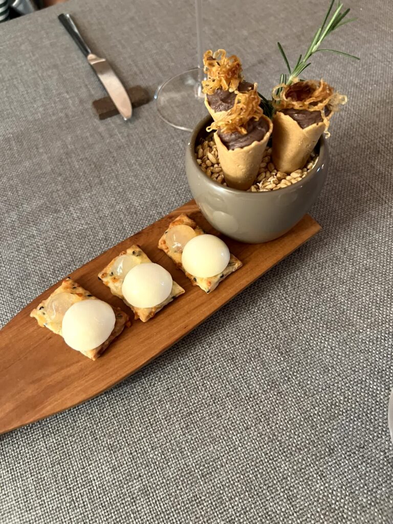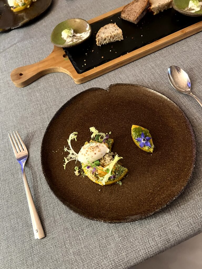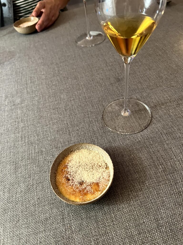 …stand schon lange auf meiner Liste. An einem regnischen Wochenende war es dann endlich soweit. Architektonisch genau mein Stil. Nachfolgend eine Gedächnisrekonstruktion der Gänge, wir hatten 7 Gänge mit Fisch & Fleisch bestellt. Dazu gab es einen Sgaminegg 2020 von Weingut Maria und Sepp Muster.