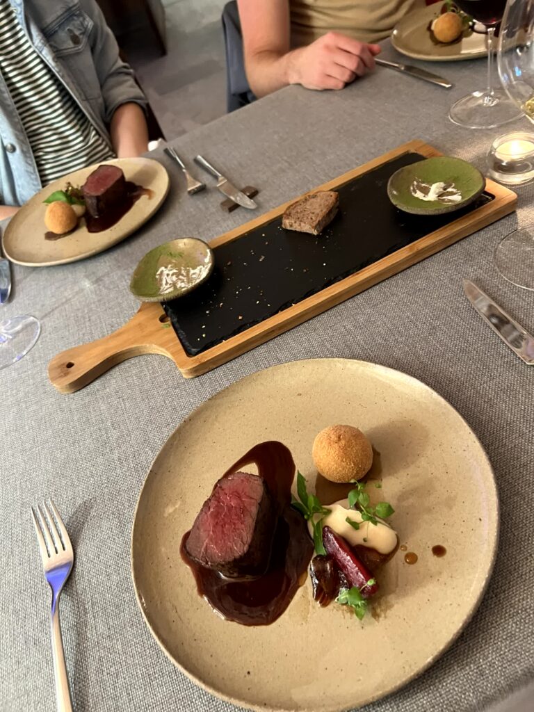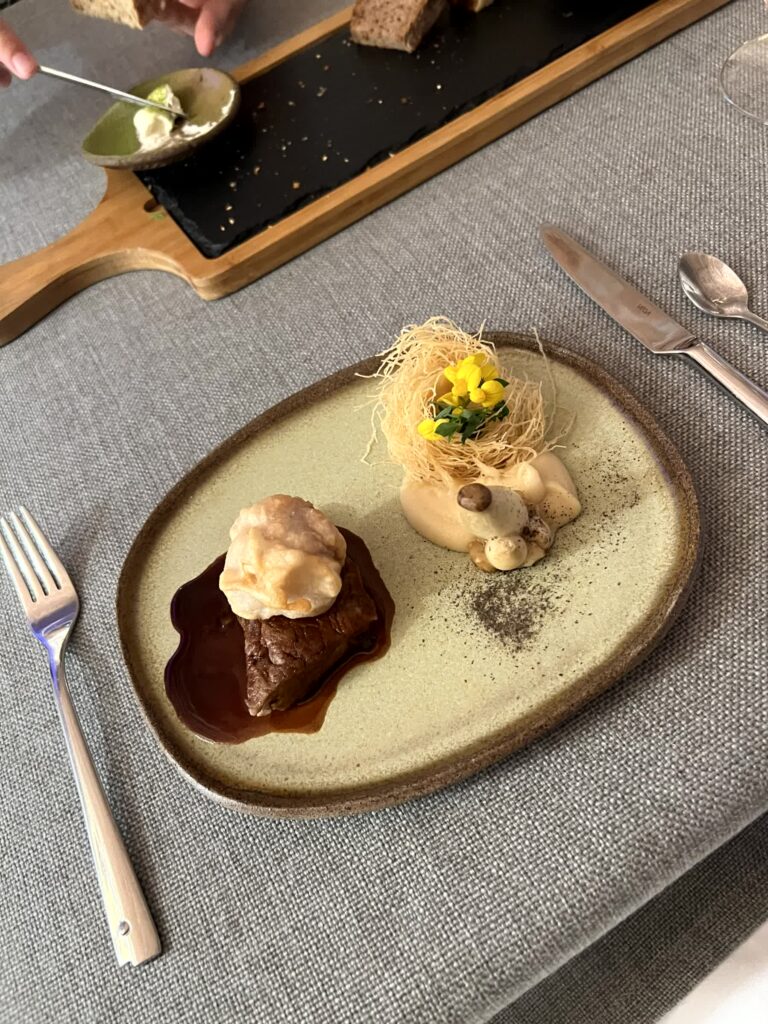 Grundsätzlich bin ich sehr zufrieden, der Lachs auf Beluga Linsen war grandios, sowieso der Kalbsdeckel und die Wacholder Erfrischung. Beim Hirschfiletsteak musste man etwas Geduld mitbringen, das Tier war doch schon älter und man musste ausreichend kauen. Das Personal war stets bemüht den passenden hauseigenen Wein anzubieten, mein Highlight war der 2018 Sauvignon Blanc 18 Monate in Holzfässern gereift.