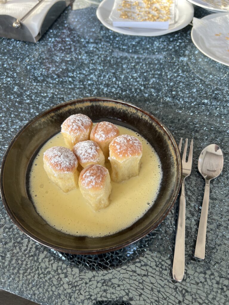 Schauen ultra lieb aus, ungefüllter purer Traum! Rezept der Buchteln und Vanillesauce sind von Richard Rauch.
