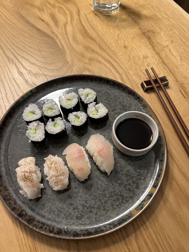 Wer sagt Sushi geht nur mit Meeresfisch? Anbei ein Versuch von Forellen-Maki und Forellen-Sashimi. Die Forelle kommt sehr gut durch, auch wenn der Schnitt durch die Größe des Filets sehr schwierig ist.