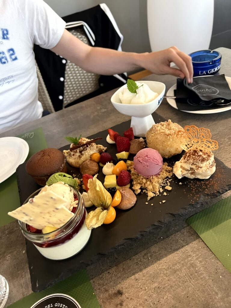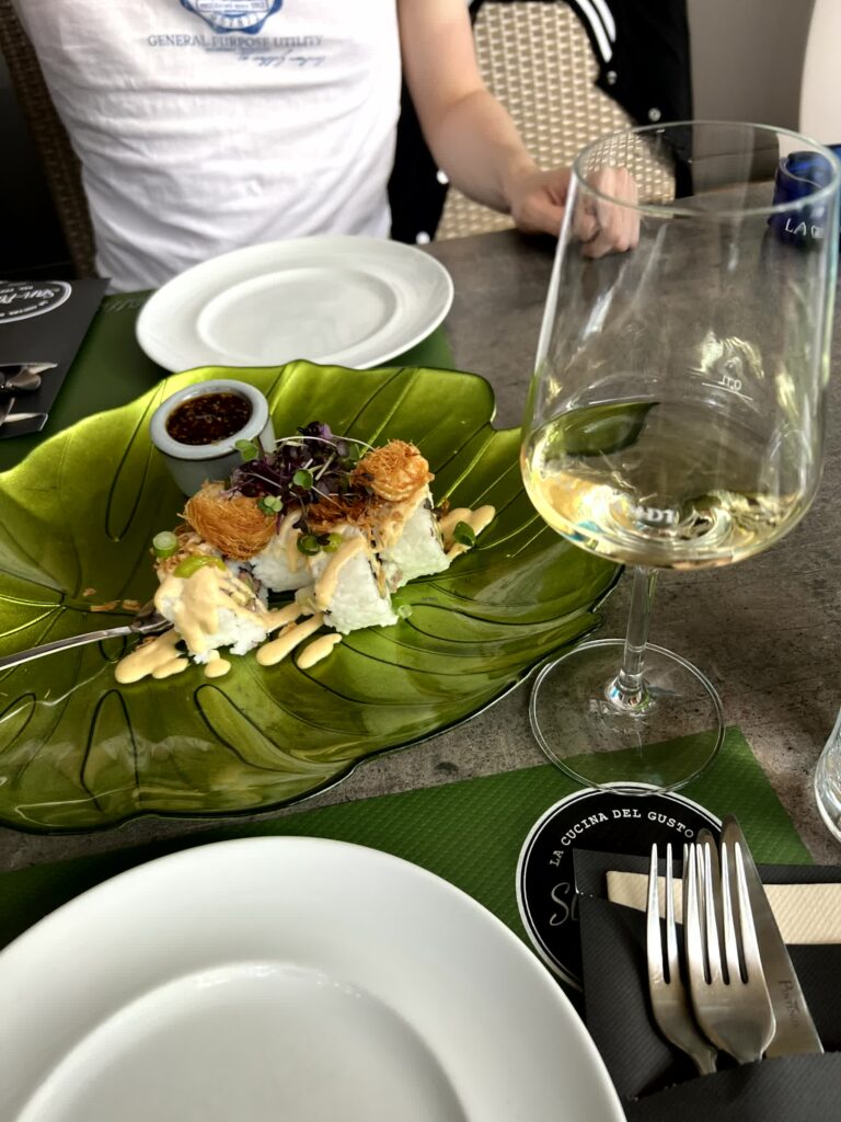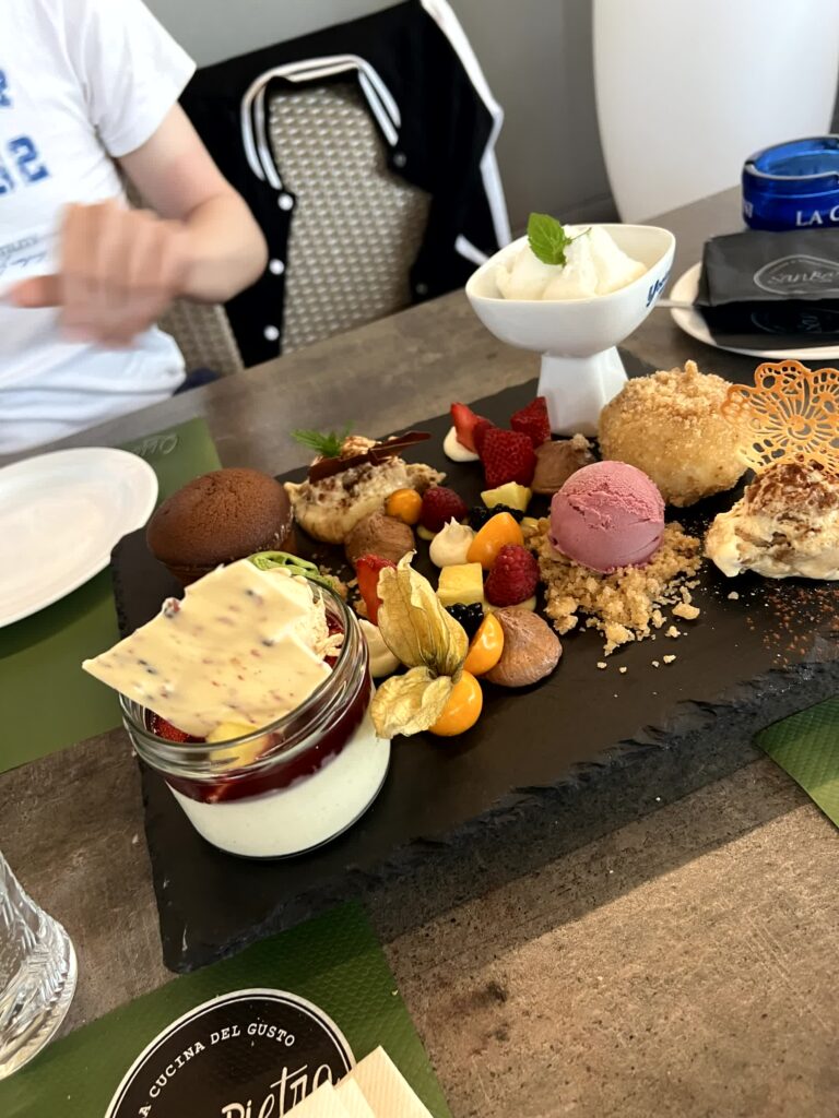 Nach einigen ungewollten Absagen dann doch mal hingeschafft. Gestartet wurde italo-asiatisch(?) mit einer Art Sushi, danach Pinse und zum Abschluss eine Dolci Degustationsplatte.