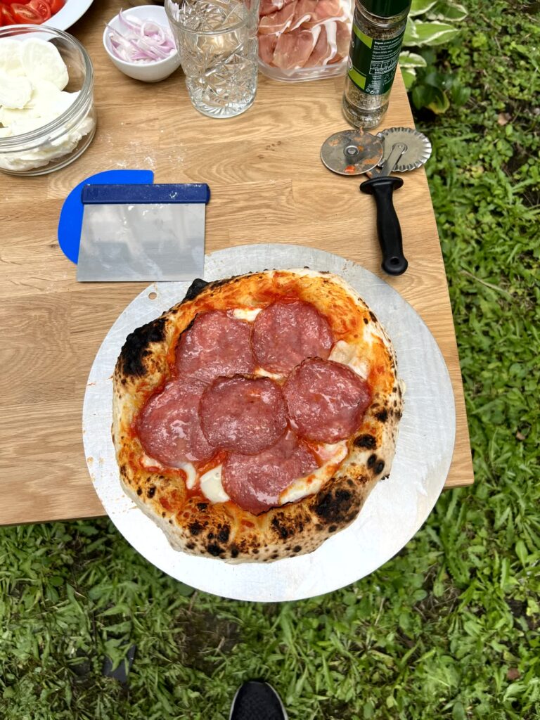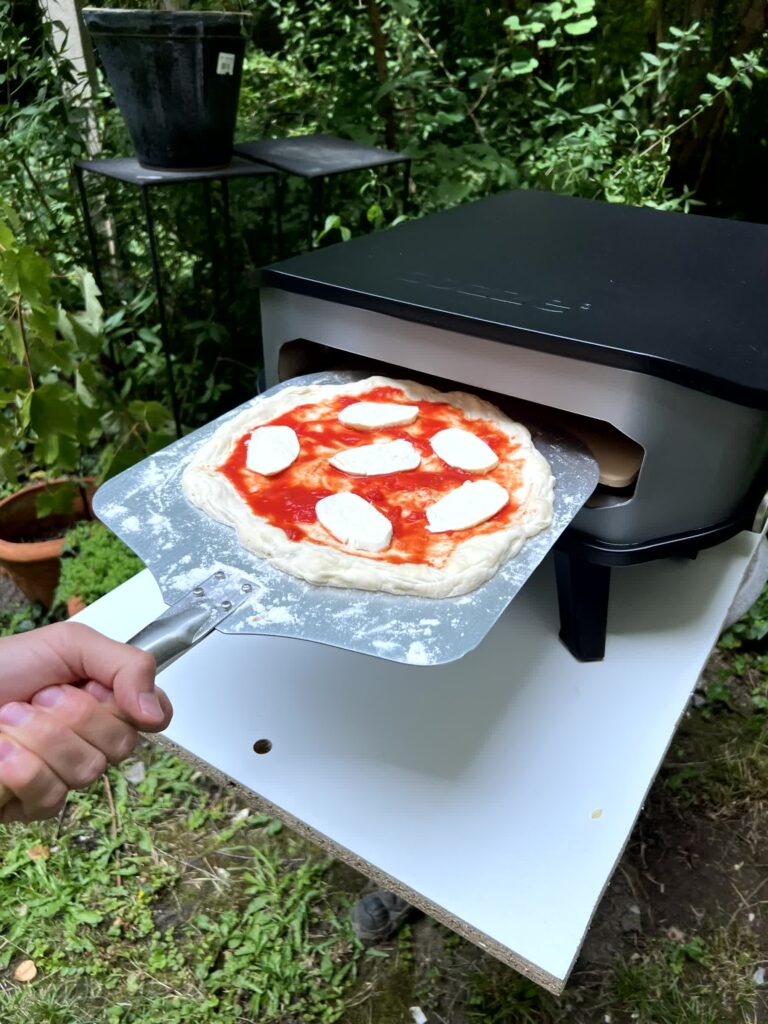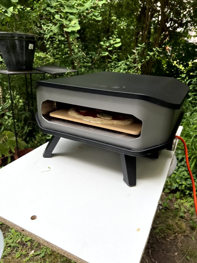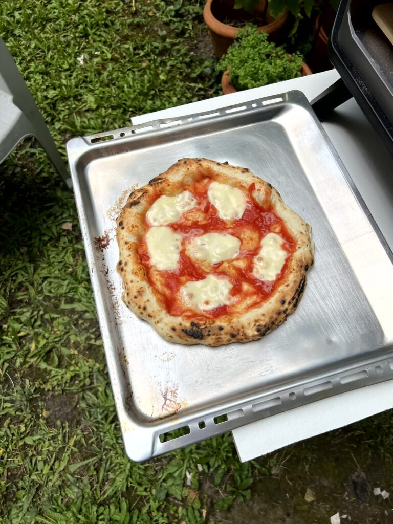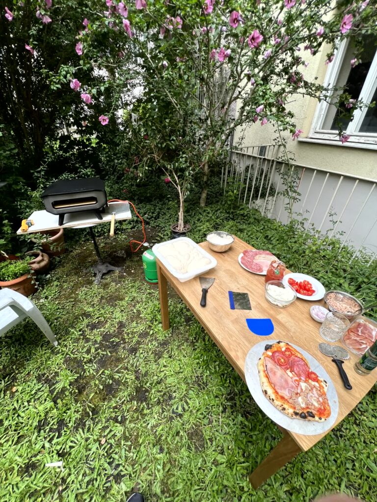 Wenn man mit der Lieferware nicht zufrieden ist muss man eben auch im Büro selbst anpacken. Im Angebot haben wir einen Gas-Pizzaofen gefunden, schnell im Garten angestartet und mit neopolitanischen Teig bestückt. Rausgekommen ist eine wundervolle Margarita Pizza. Klar, ein bisschen Übung braucht es noch und den Prozess kann man immer optimieren, aber immerhin viel besser (und frischer) als gekauftes.