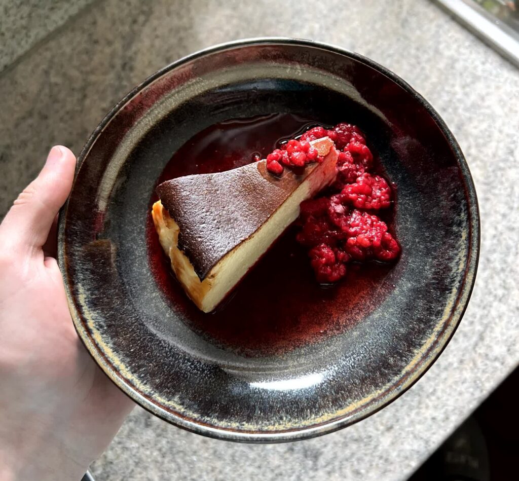Rezept von Matt Adlard, dazu aufgetaute eigene Himbeeren mit Staubzucker und Cointreau
