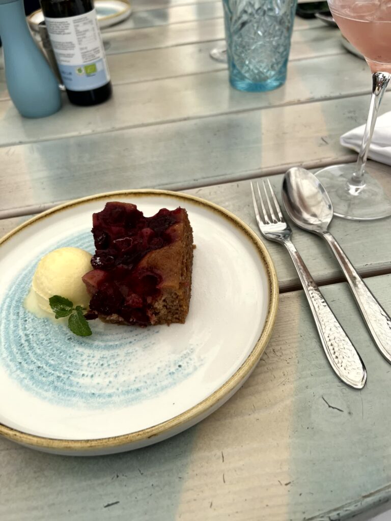 Insgesamt war ich sehr zufrieden. Wir tranken zuerst anti-alkoholisch Passion Soda, dann einen Sanscerre (wie immer sehr gut) und als Rotwein „Ersatz“ einen Johannesbeersaft. Begleitet wurden wir von einem Gewitter, die dramatische Komponente war also auf jeden Fall da!